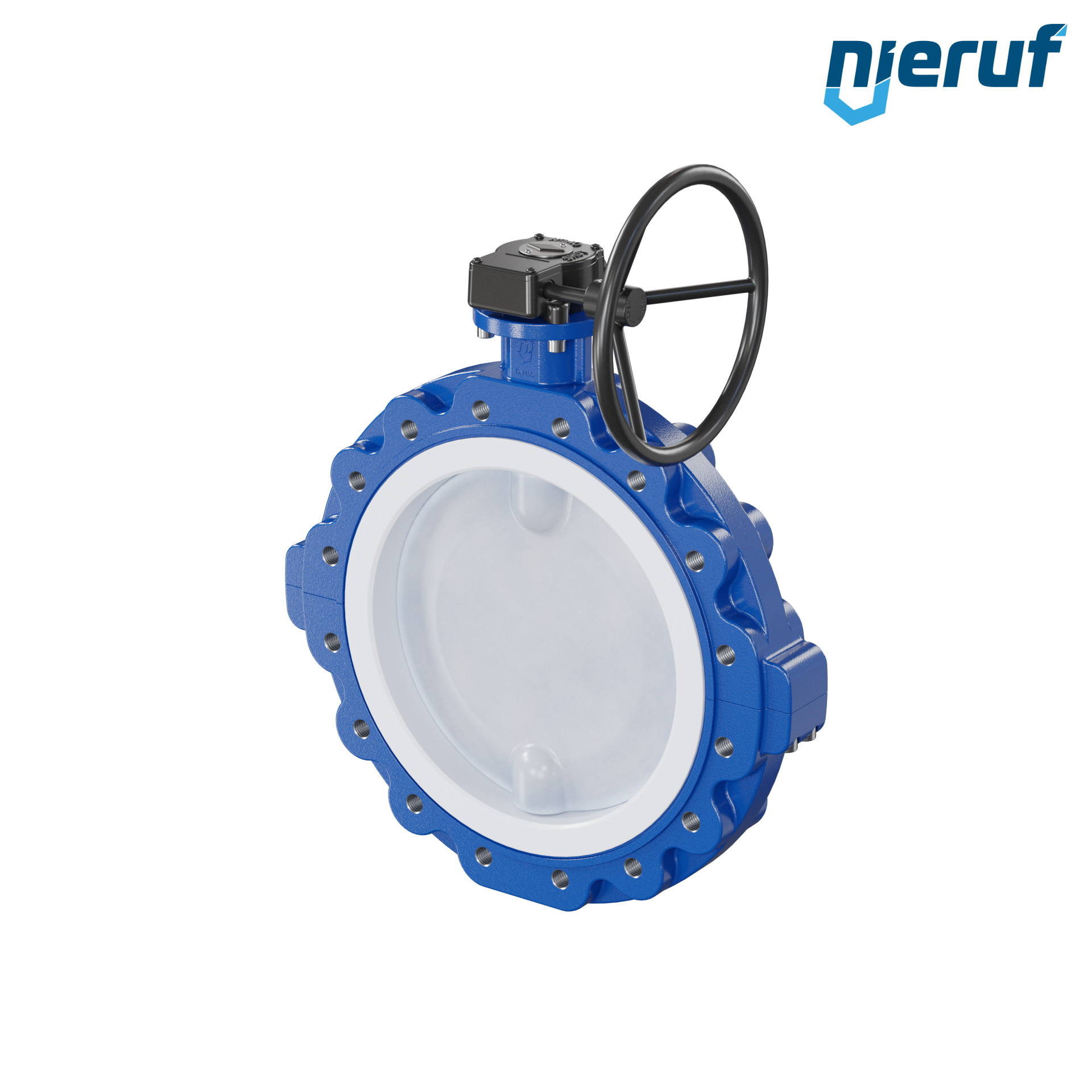 valvola a farfalla PFA PTFE AK10 DN400 PN10 volantino manuale inserto in silicone