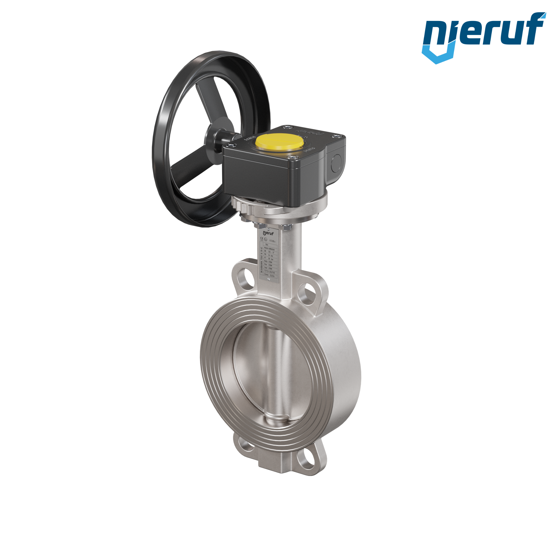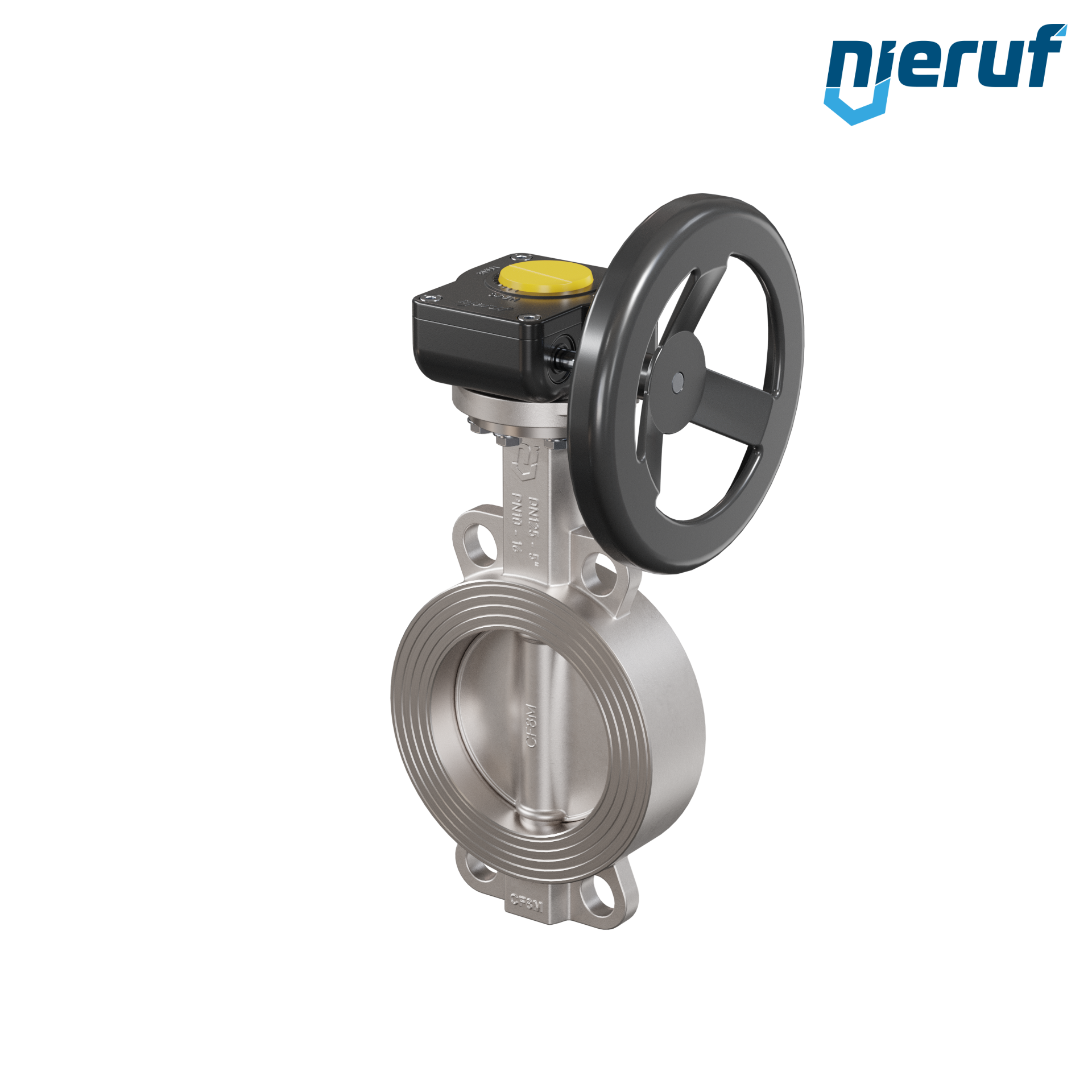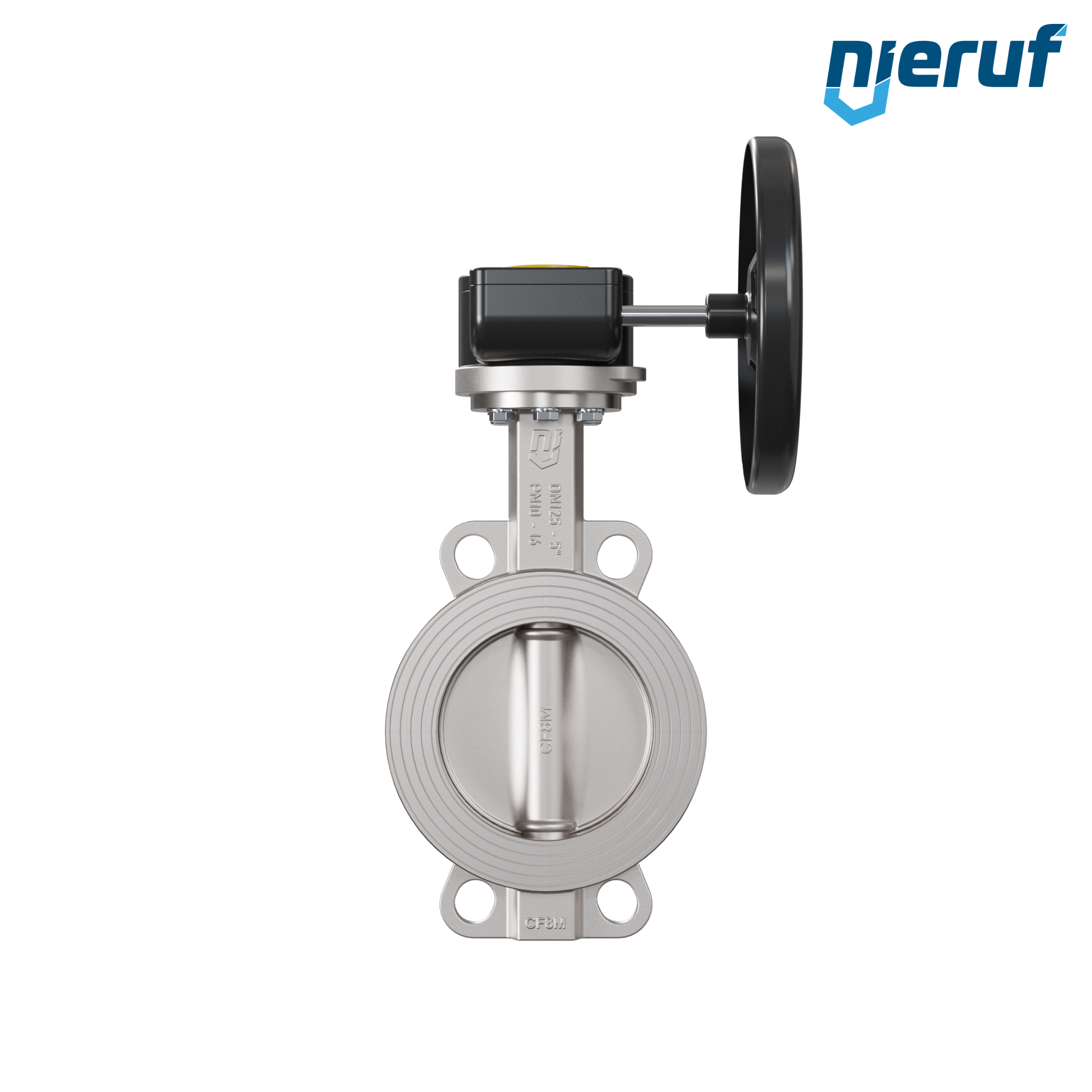 valvola a farfalla in acciaio inossidabile DN 125 PN16 tipo wafer corpo in acciaio inossidabile 1.4408 disco in acciaio inossidabile 1.4408 con volantino e guarnizione in metallo
