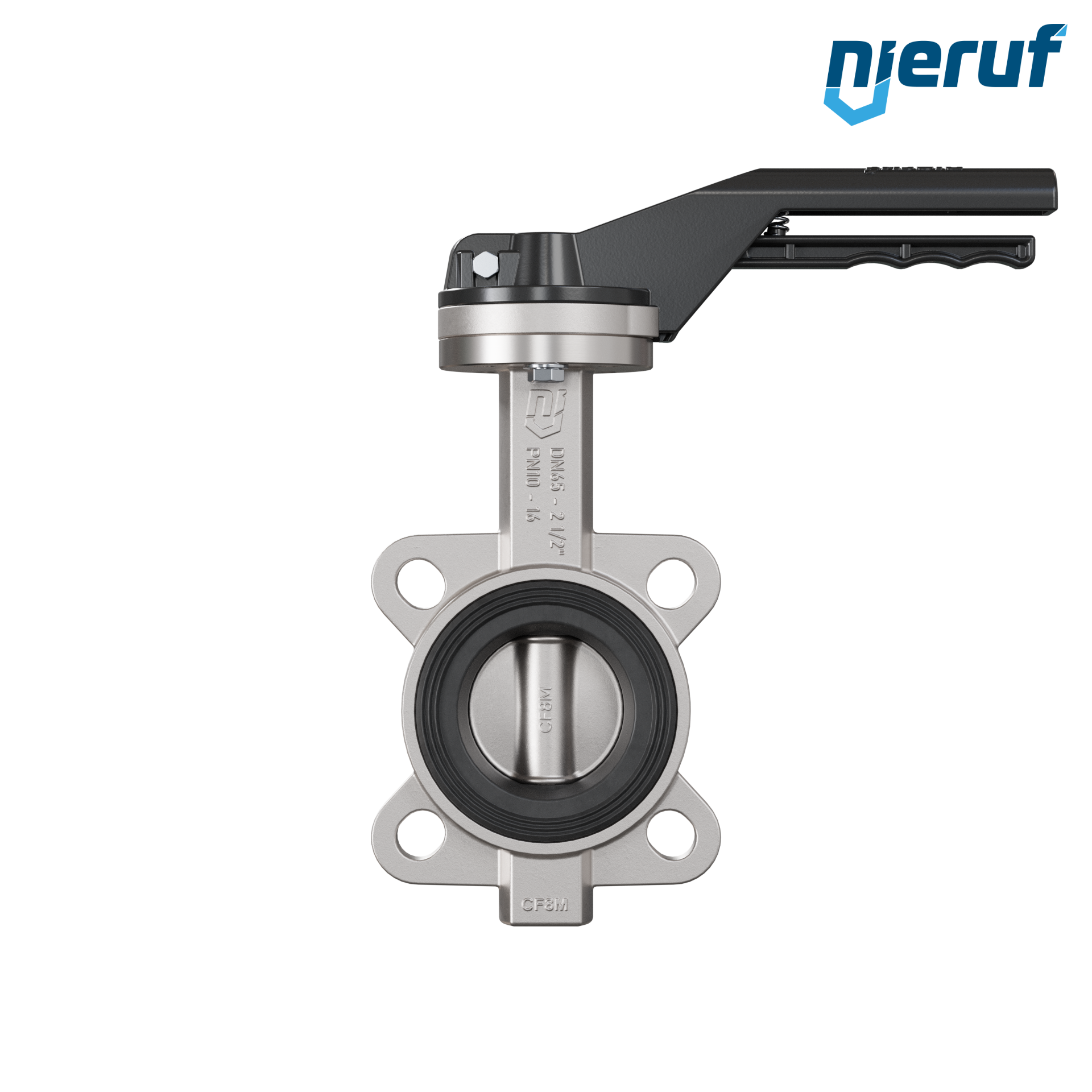 valvola a farfalla in acciaio inossidabile DN 65 PN16 tipo wafer corpo in acciaio inossidabile 1.4408 disco in acciaio inossidabile 1.4408 con leva a a mano e guarnizione in EPDM