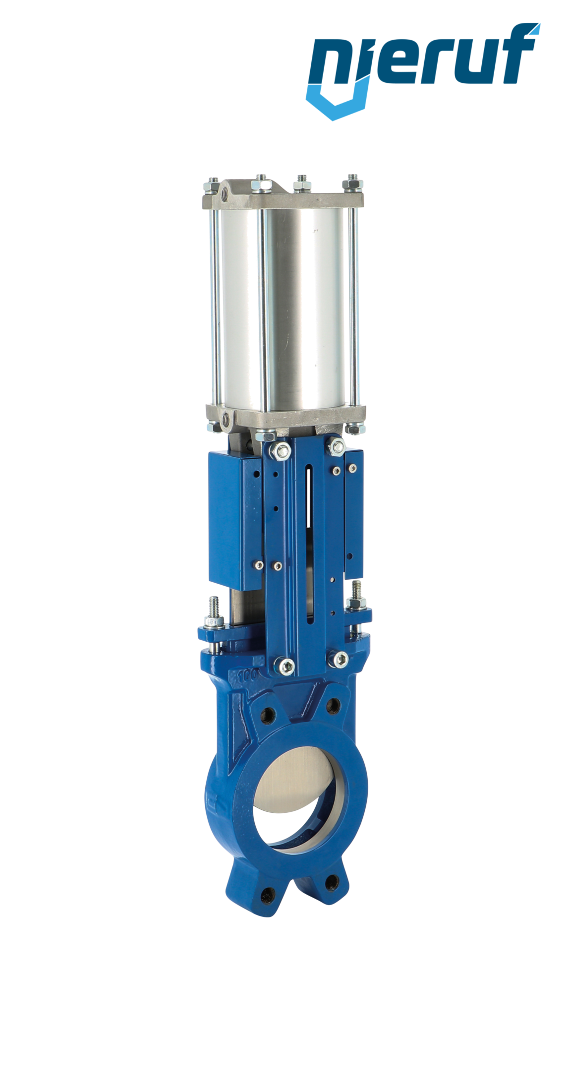 valvola a ghigliottina attuatore pneumatico a doppio effetto DN 125 DIN EN 1092-1 PN10 EPDM in ghisa EN GJL-250 versione unidirezionale, tenuta su un lato per fluidi liquidi e gassosi