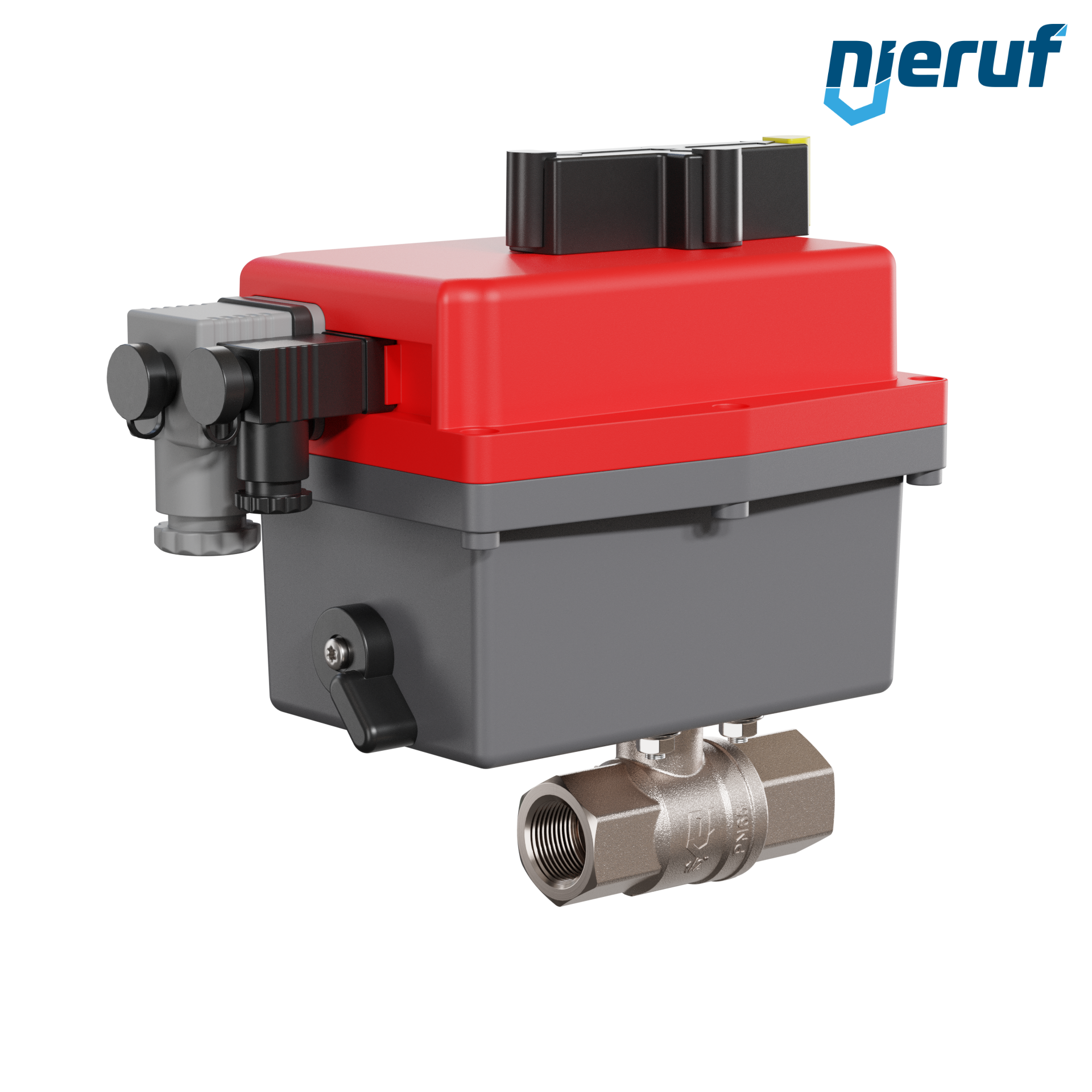 Questa valvola a sfera automatica con manicotto di alta qualità in ottone con attuatore rotativo elettronico (Serie H = alto voltaggio) ha un indicatore di posizione ottico e comando manuale in caso di emergenza.