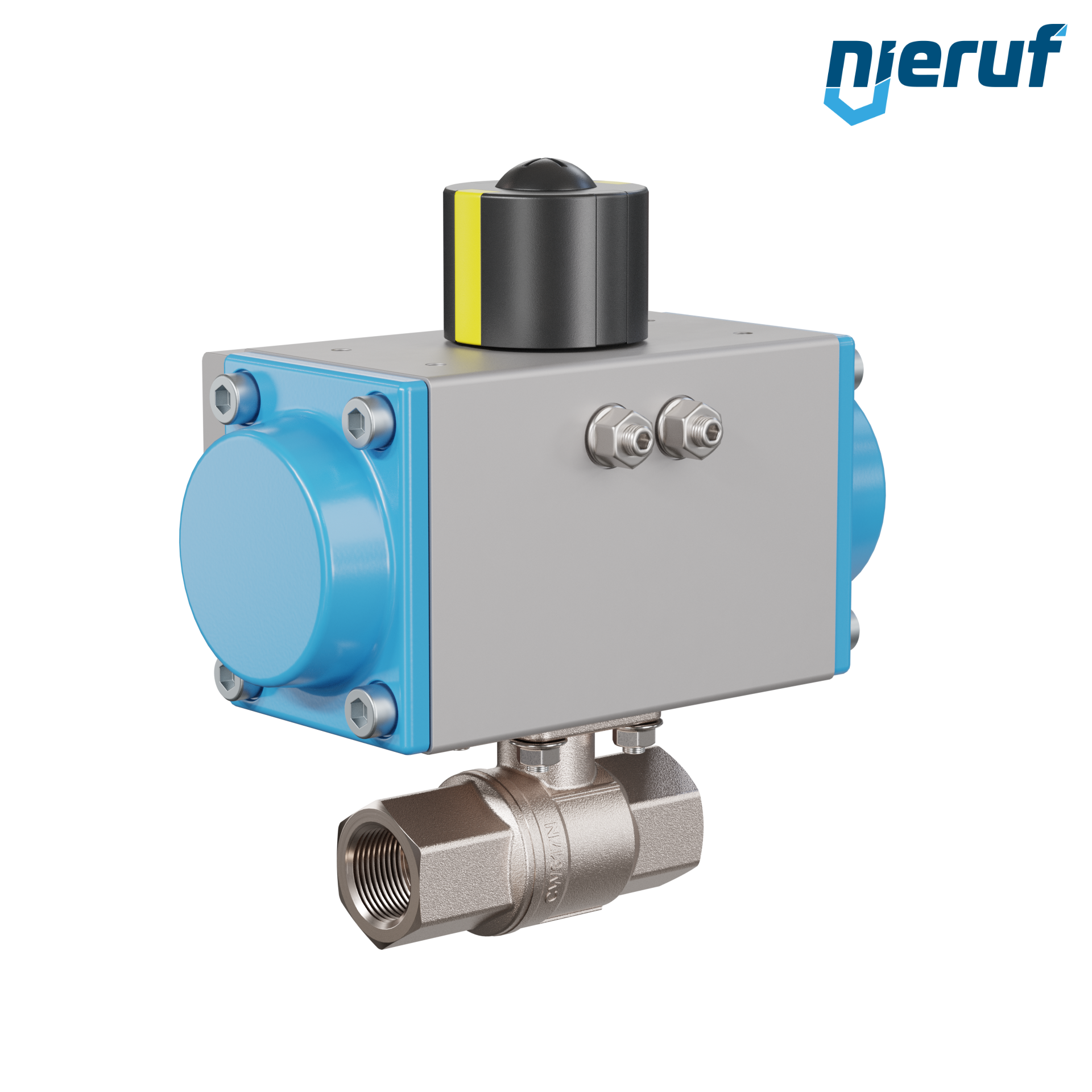 valvola a sfera con manicotto automatica DN15 - 1/2" pollici ottone CW617N vernickelt PK01 azionamento rotativo pneumatico GD052 in alluminio (funzionamento: GS = a effetto semplice - apertura a molla)