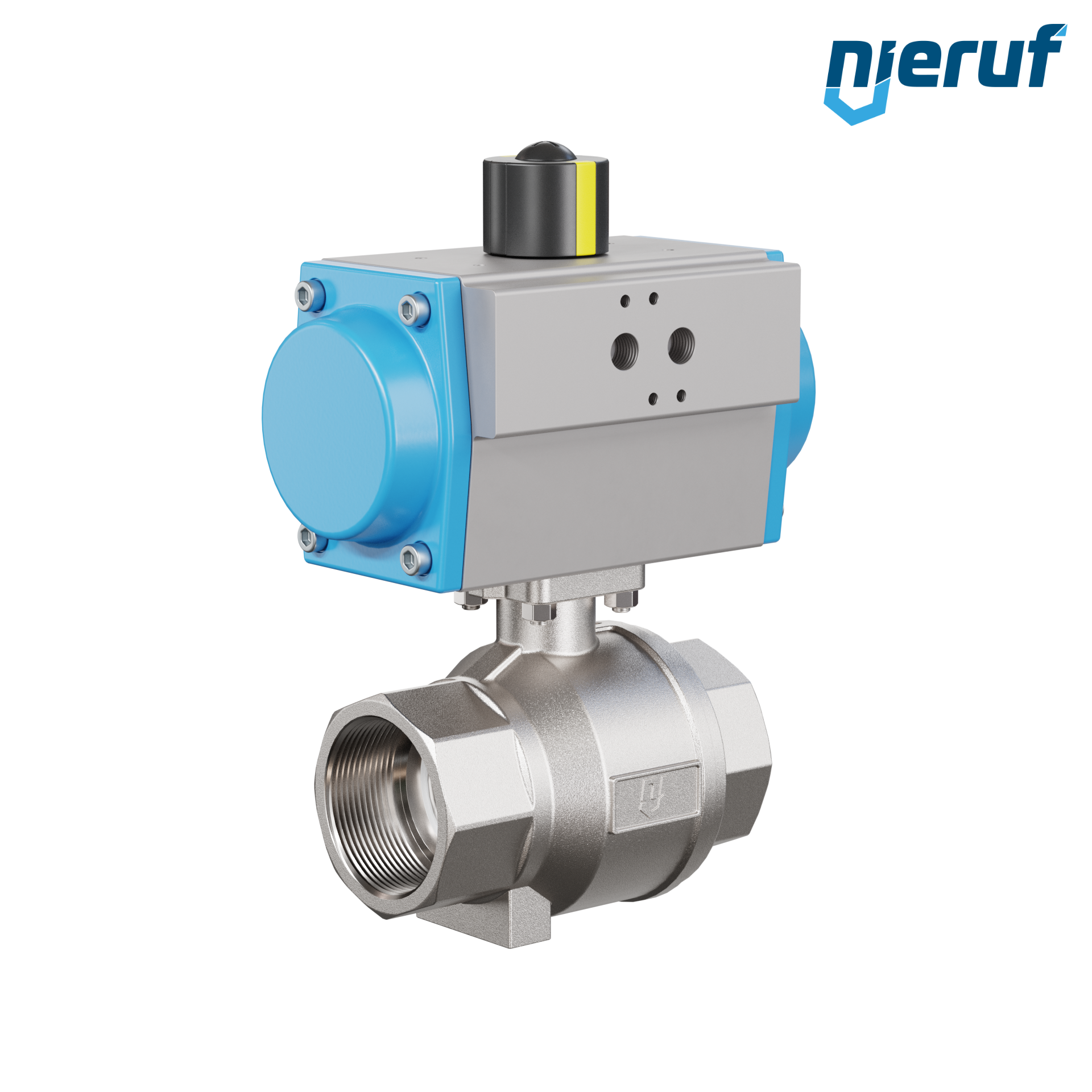valvola a sfera pneumatica DN50 - 2" pollici acciaio inossidabile 1.4408 PK02 azionamento rotativo pneumatico GS075 in alluminio (funzionamento: GS = a effetto semplice)