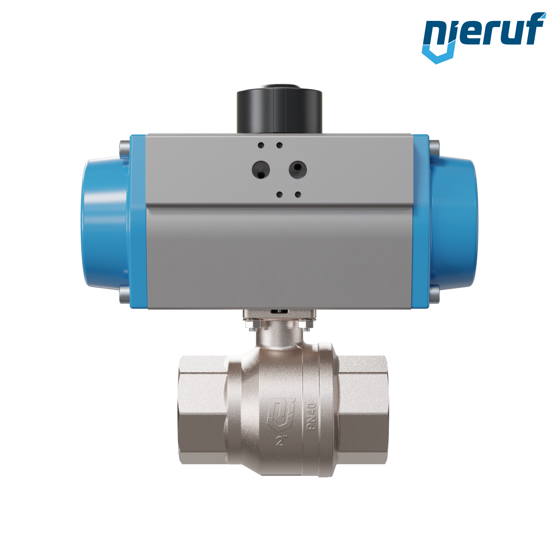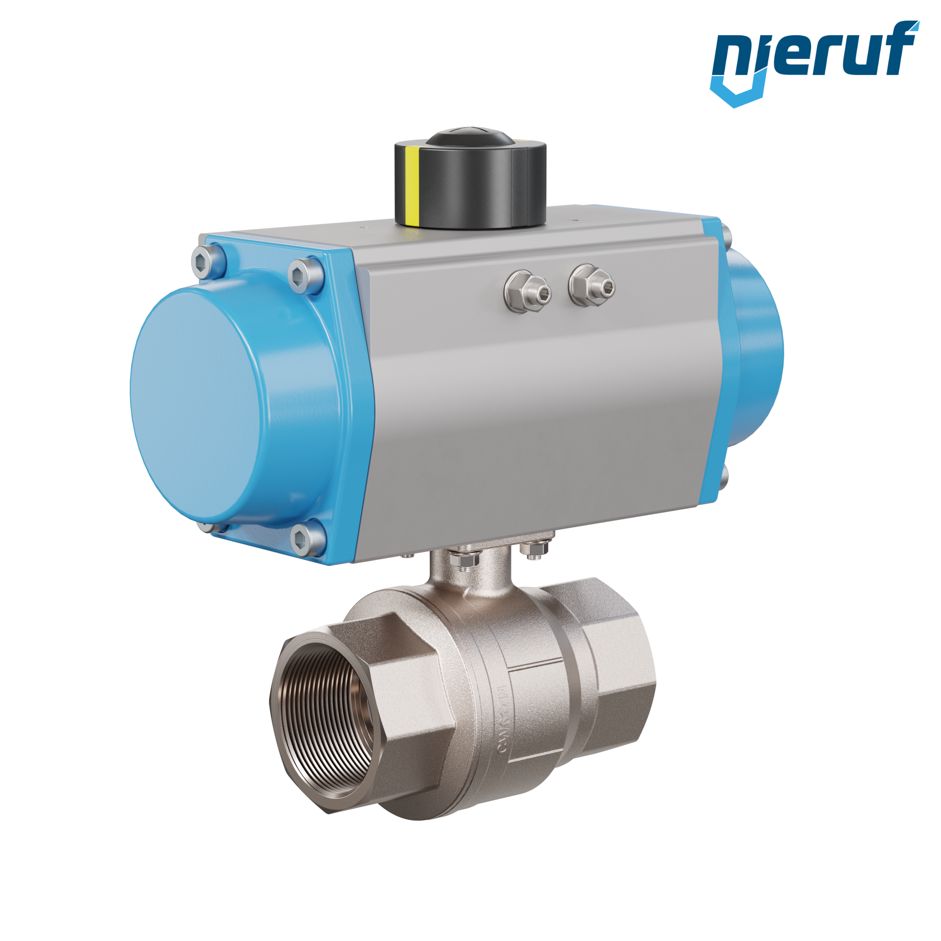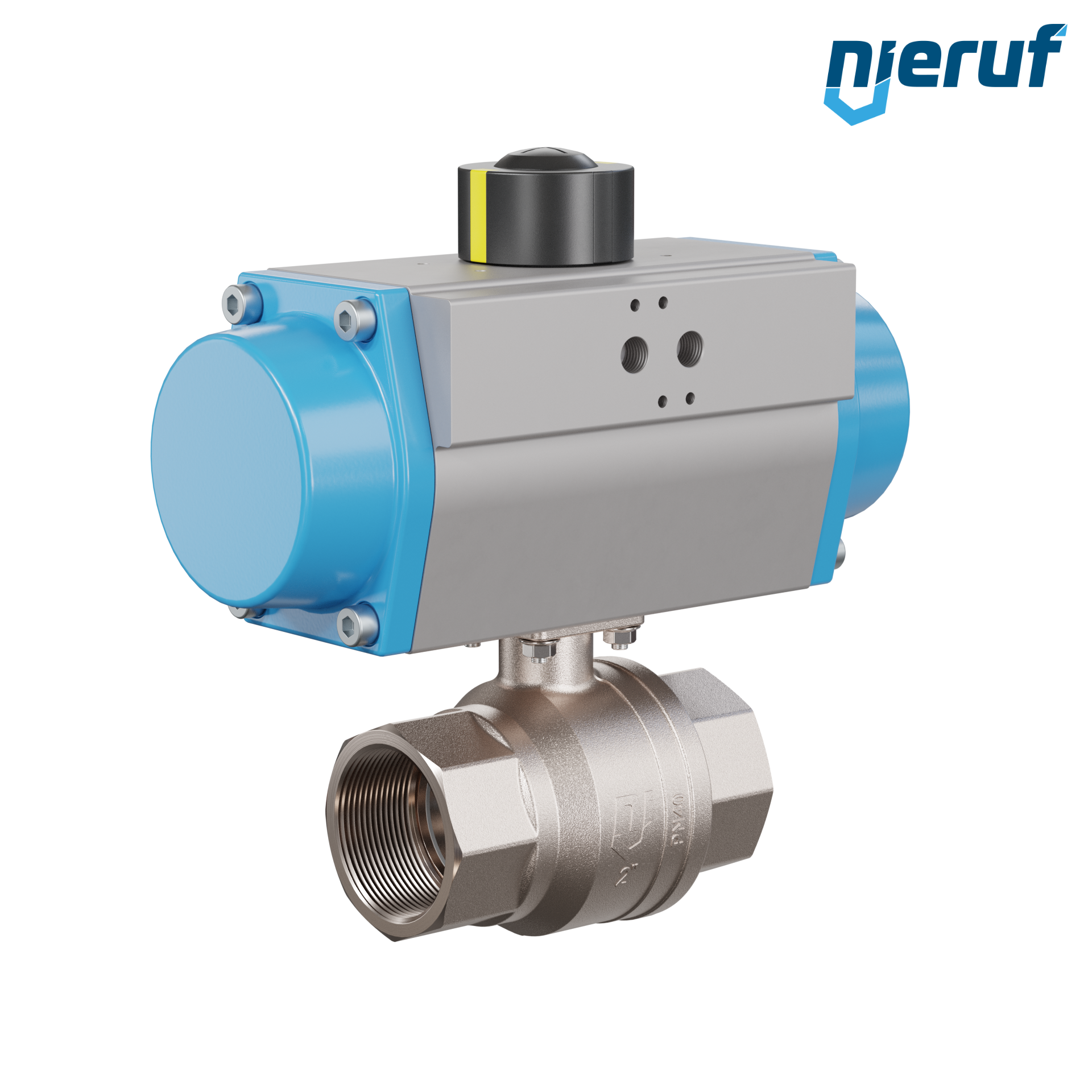 valvola a sfera con manicotto automatica DN50 - 2" pollici ottone CW617N vernickelt PK01 azionamento rotativo pneumatico GS092 in alluminio (funzionamento: GS = a effetto semplice - apertura a molla)