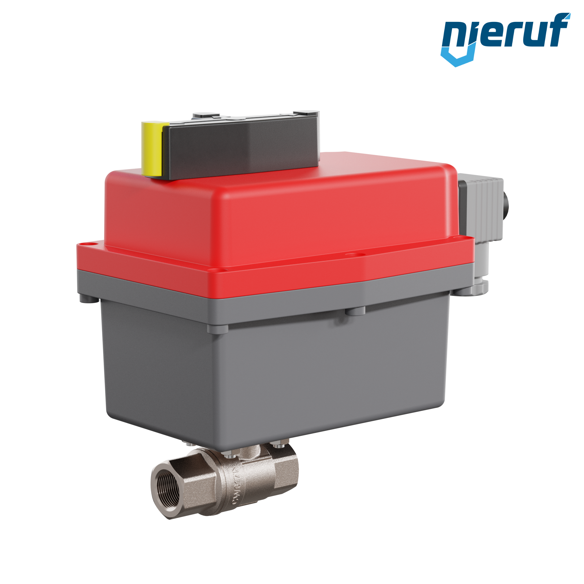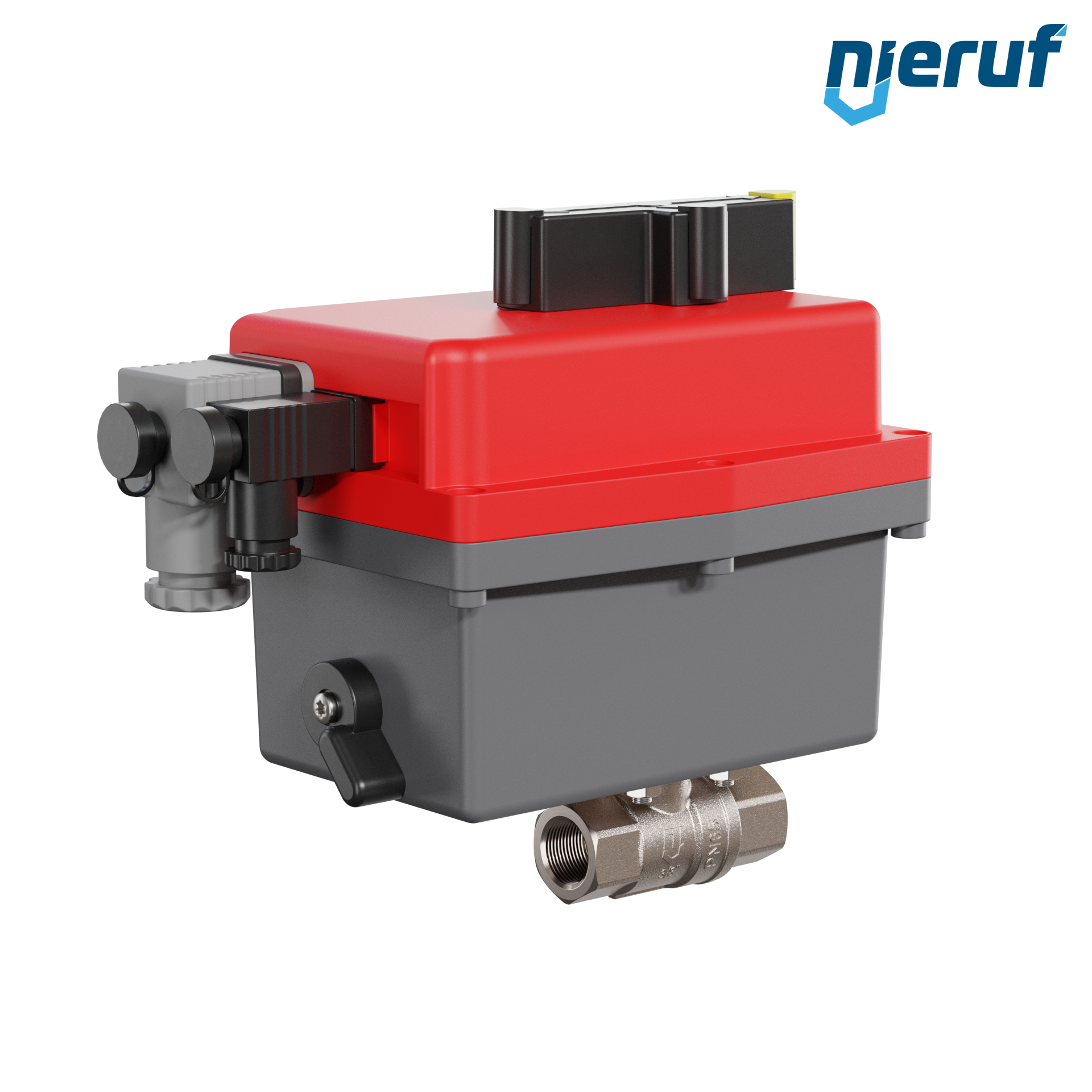 Questa valvola a sfera automatica con manicotto di alta qualità in ottone con attuatore rotativo elettronico (Serie L = basso voltaggio) ha un indicatore di posizione ottico e comando manuale in caso di emergenza.