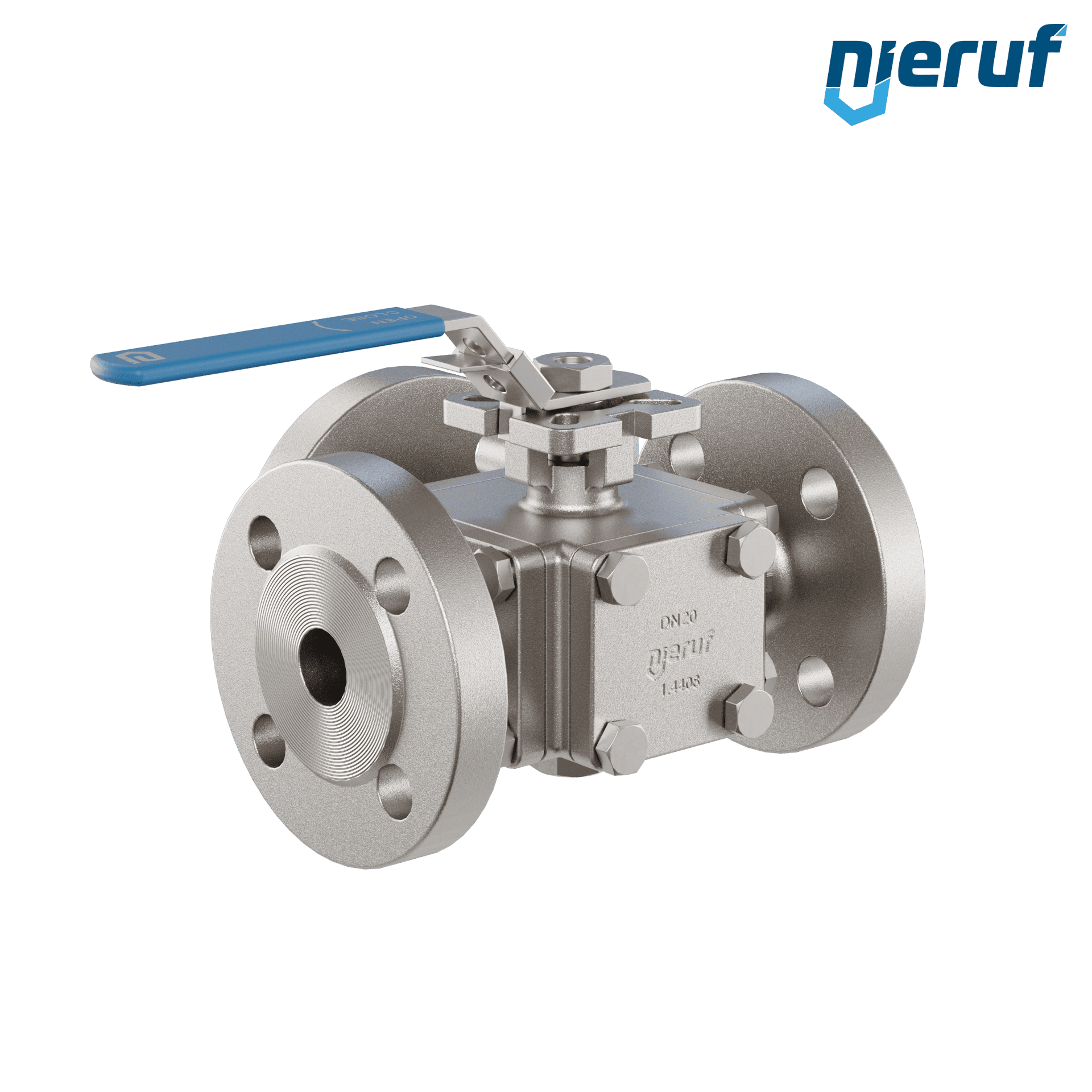 valvola a sfera flangiata a 3 vie in acciaio inossidabile DN20 PN16/40 FK09 corpo in acciaio inossidabile 1.4408 sfera in acciaio inossidabile 1.4408 guarnizione TFM 1600 / PTFE incavo a forma di T