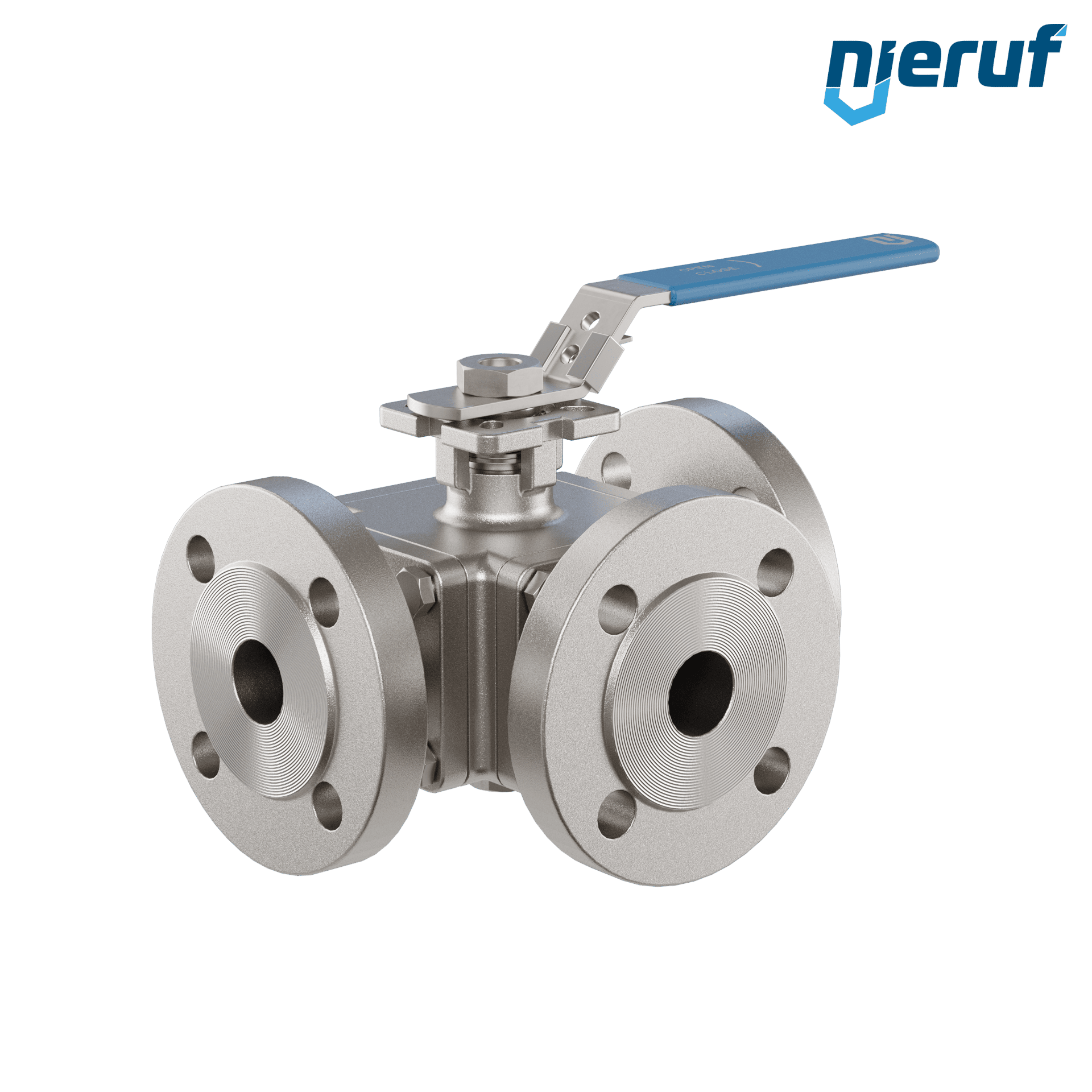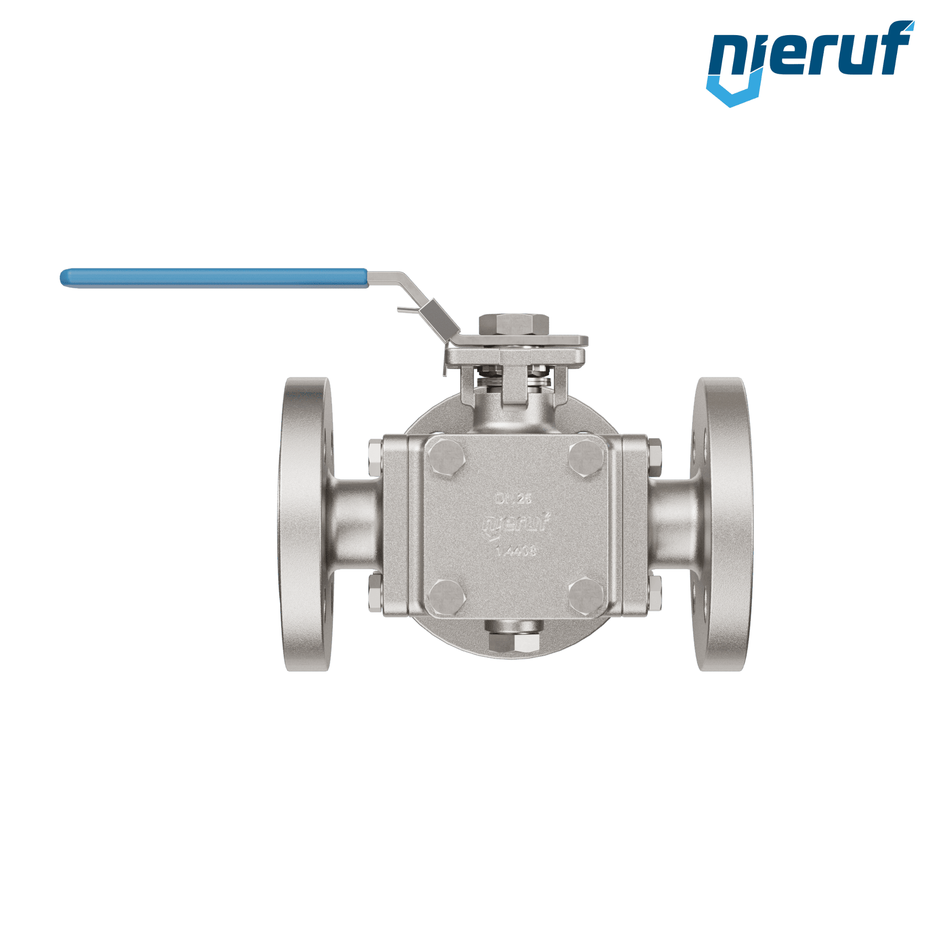 questa valvola a sfera flangiata a tre vie di alta qualità in acciaio inossidabile con copertura e flangia di montaggio secondo DIN ISO 5211 ha le seguenti omologazioni / certificazioni: PED 97/23 / EG, categoria 3 modulo H, TA-aria 2002. questa valvola a sfera ha un incavo a T (T3).