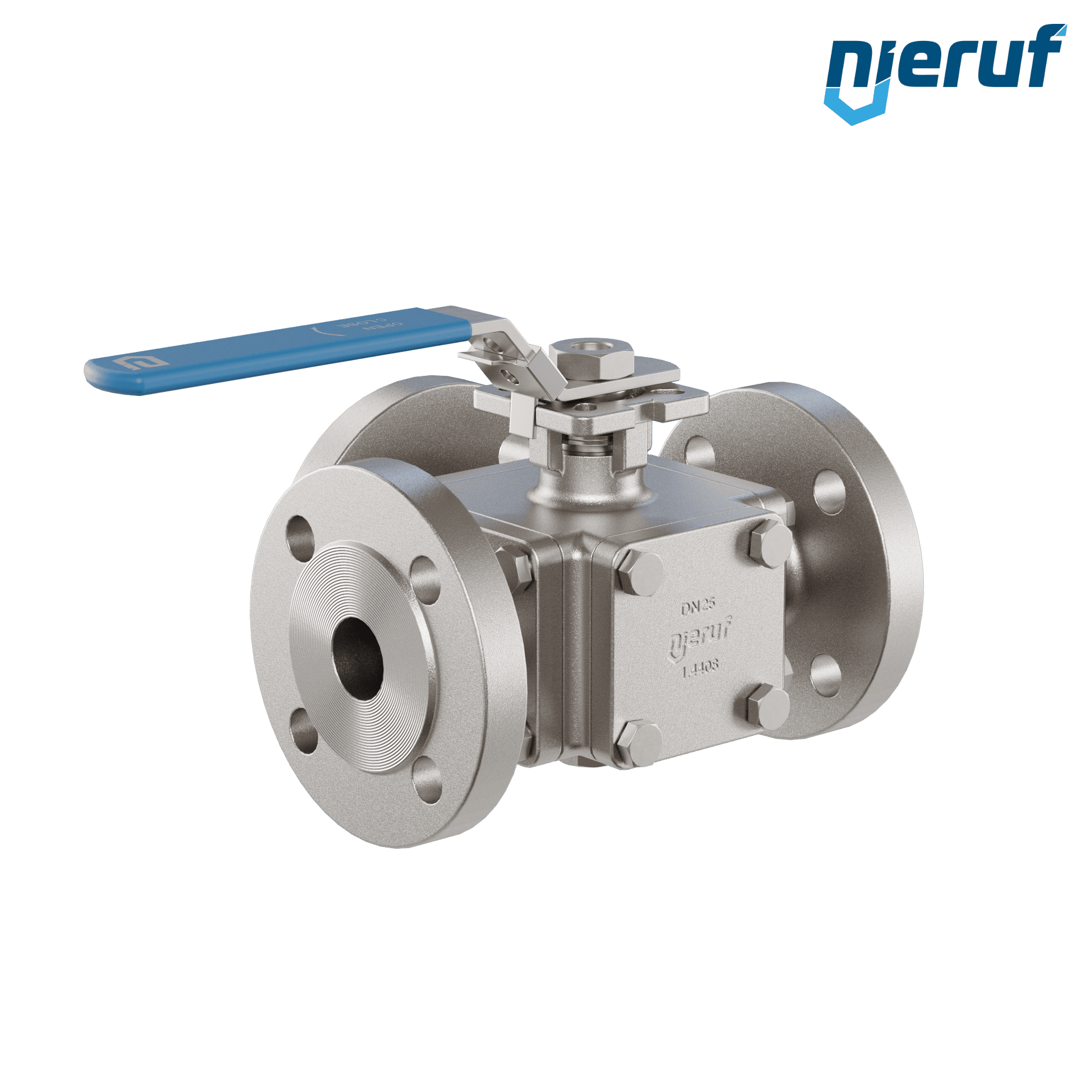 valvola a sfera flangiata a 3 vie in acciaio inossidabile DN25 PN16/40 FK09 corpo in acciaio inossidabile 1.4408 sfera in acciaio inossidabile 1.4408 guarnizione TFM 1600 / PTFE incavo a forma di T