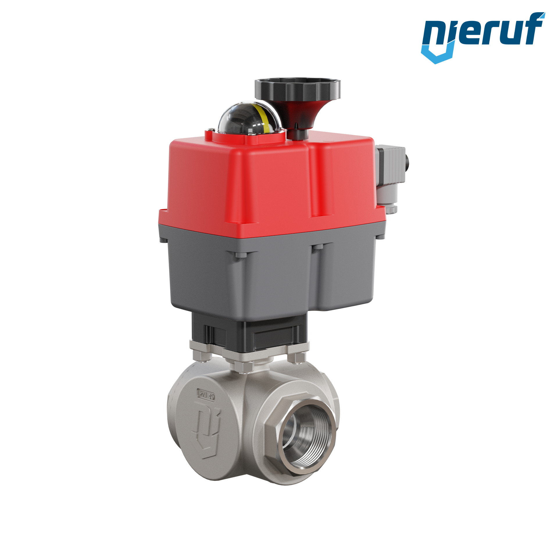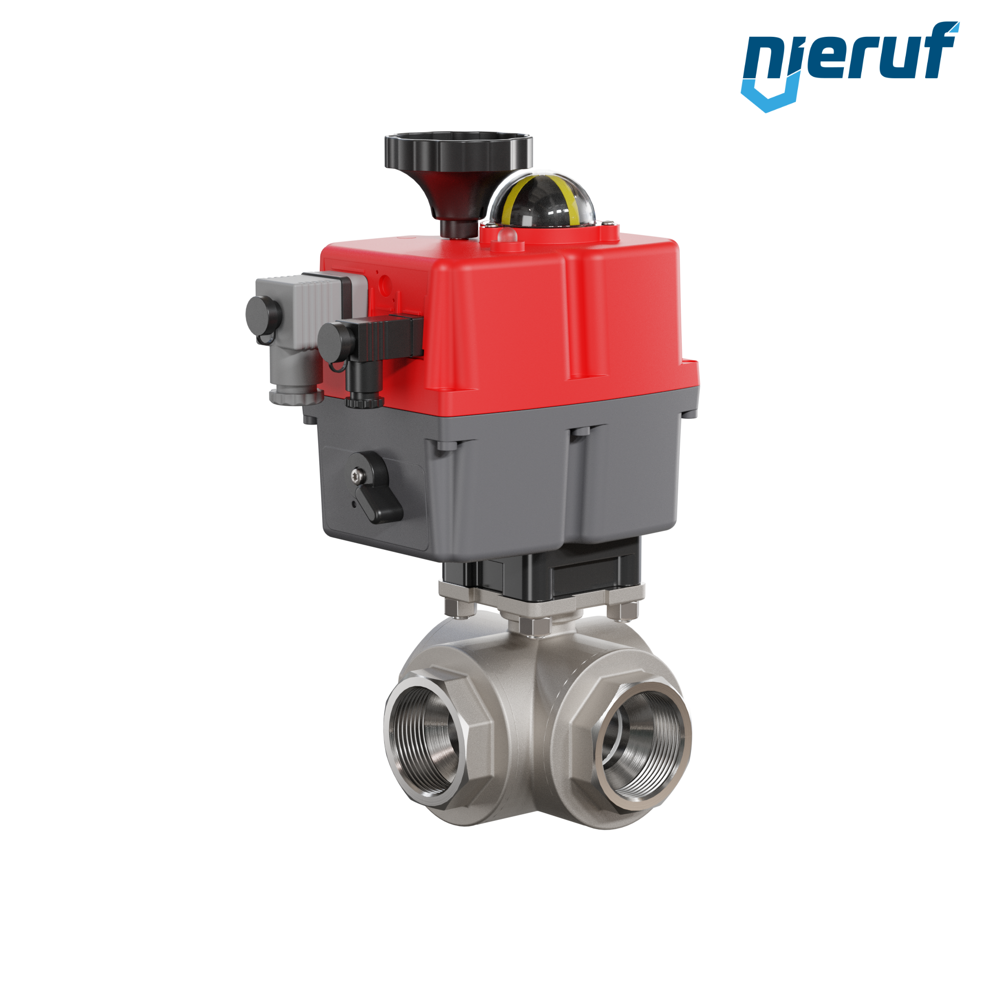 valvola a sfera a 3 vie con attuatore elettrico 24-240V DN40 - 1 1/2" pollici in acciaio inossidabile 1.4408 con a passaggio ridotto con incavo a forma di T per fluidi liquidi e gassosi