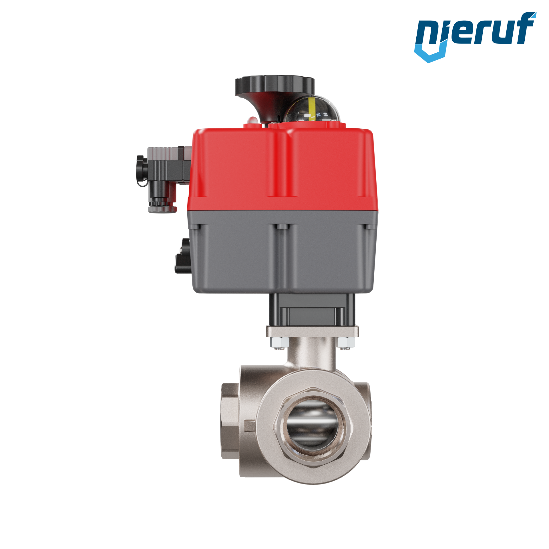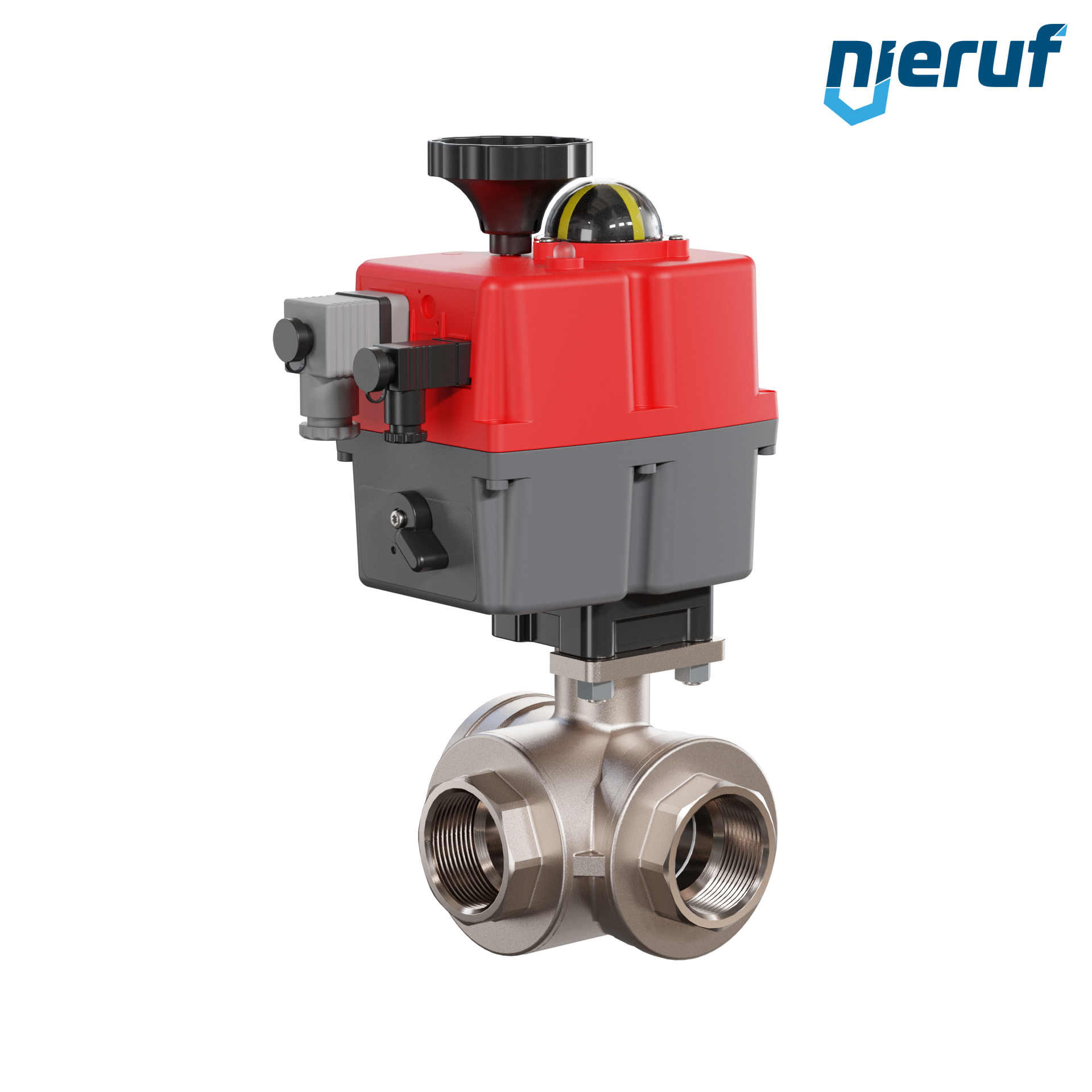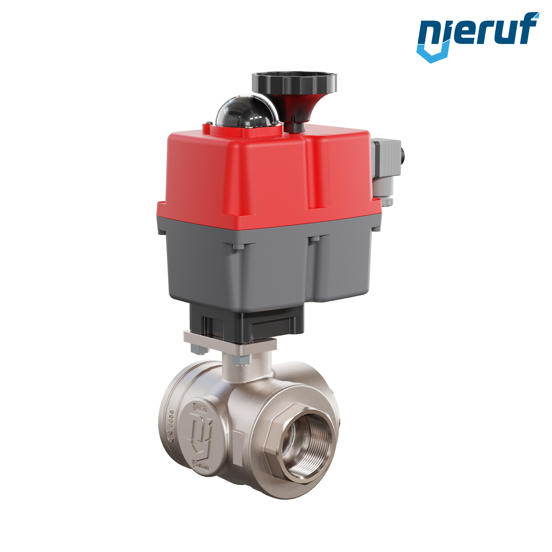 valvola a sfera a 3 vie con attuatore elettrico 24-240V DN40 - 1 1/2" pollici in ottone MS 58 nichelato (CW617N) con a passaggio totale con incavo a forma di L per fluidi liquidi e gassosi