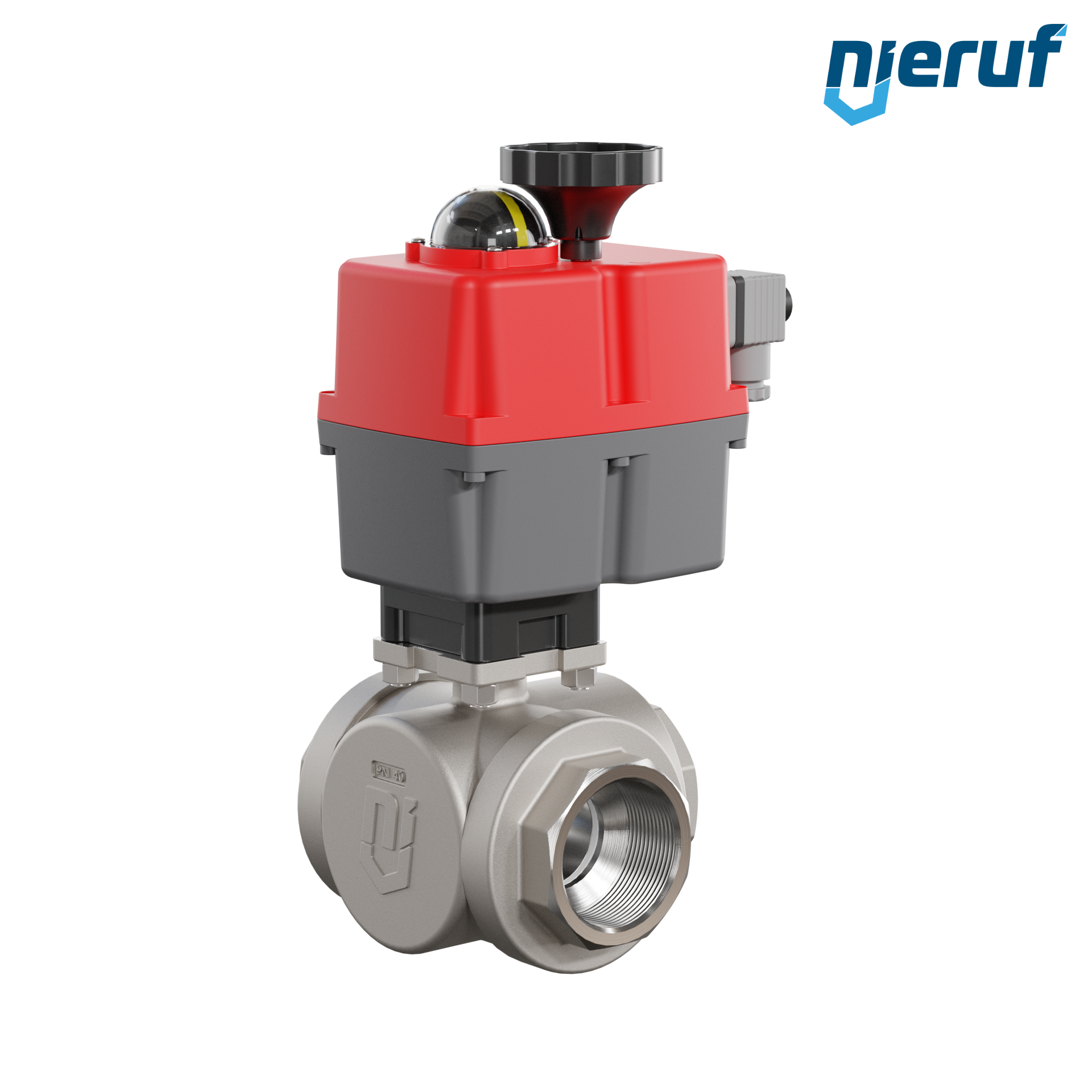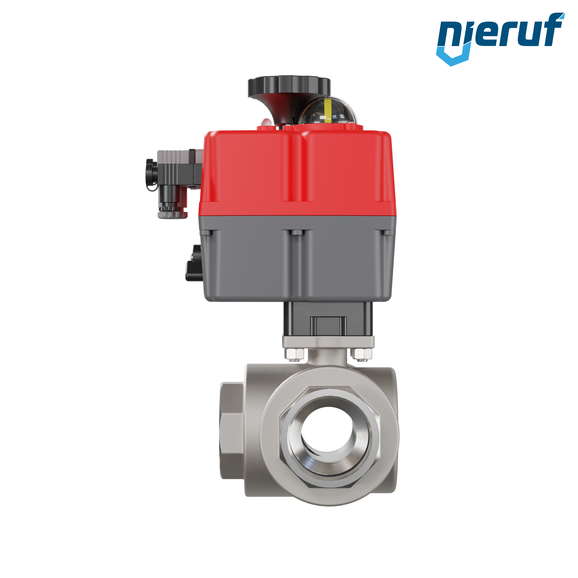 valvola a sfera a 3 vie con attuatore elettrico 24-240V DN50 - 2" pollici in acciaio inossidabile 1.4408 con a passaggio ridotto con incavo a forma di T per fluidi liquidi e gassosi