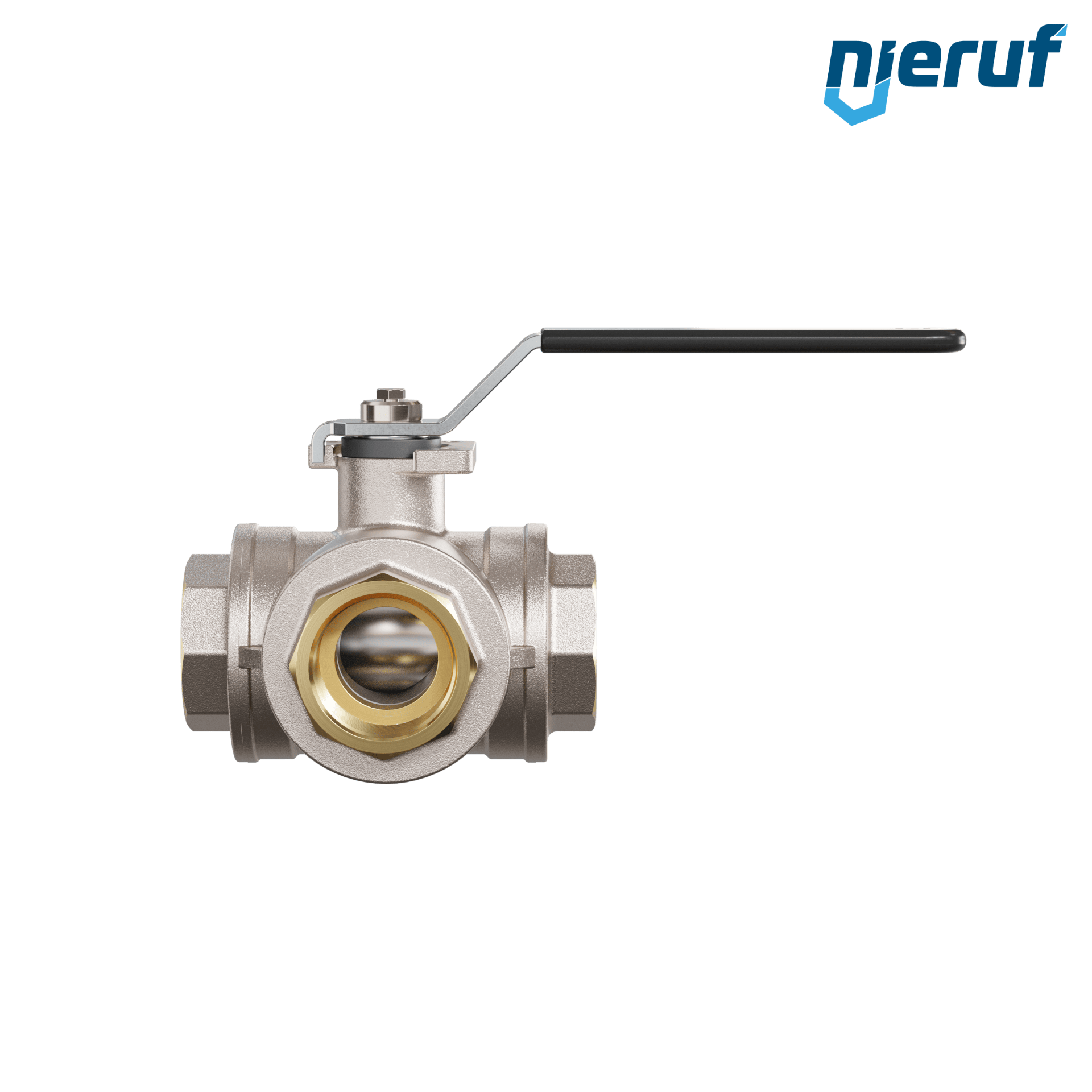 valvola a sfera a 3 vie in ottone DN32 - 1 1/4" pollici passaggio totale con incavo a forma di L guarnizioni in PTFE per fluidi liquidi e gassosi