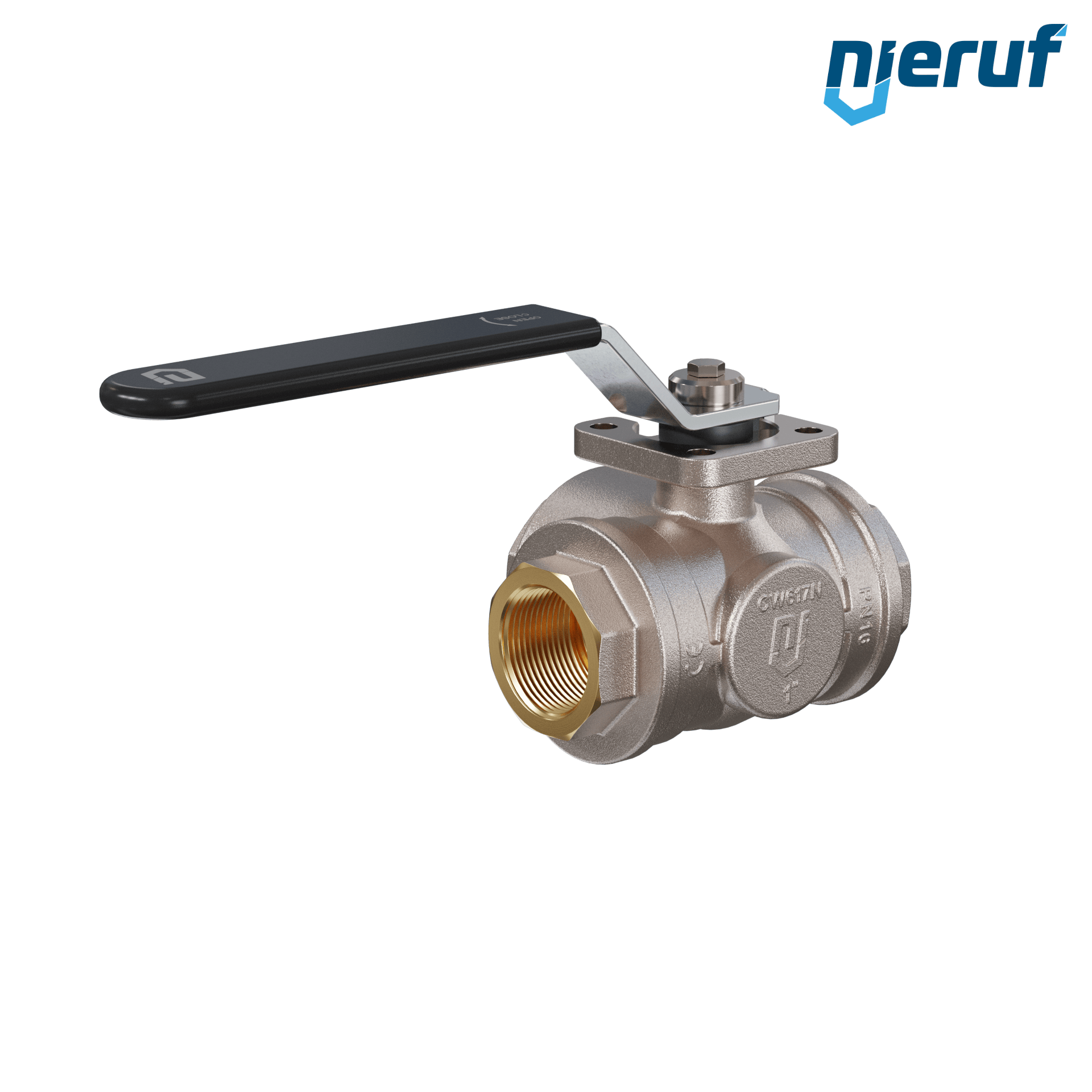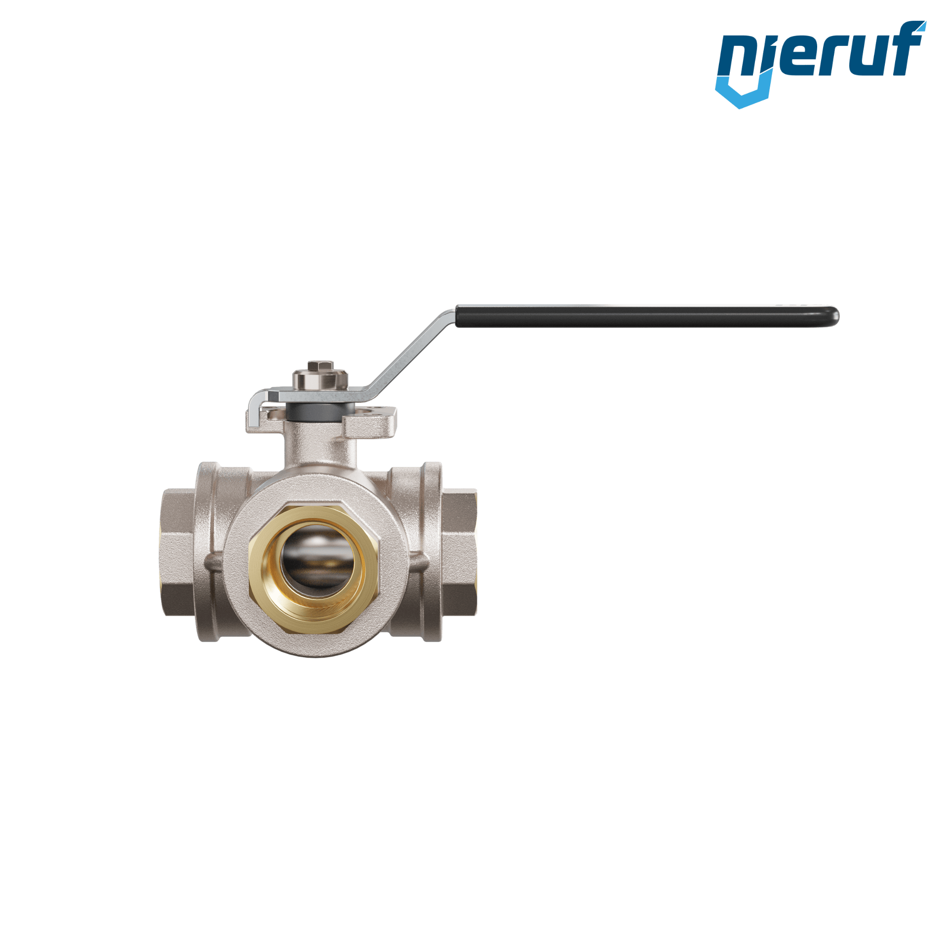 valvola a sfera a 3 vie in ottone DN25 - 1" pollici GK08 passaggio totale con incavo a forma di T