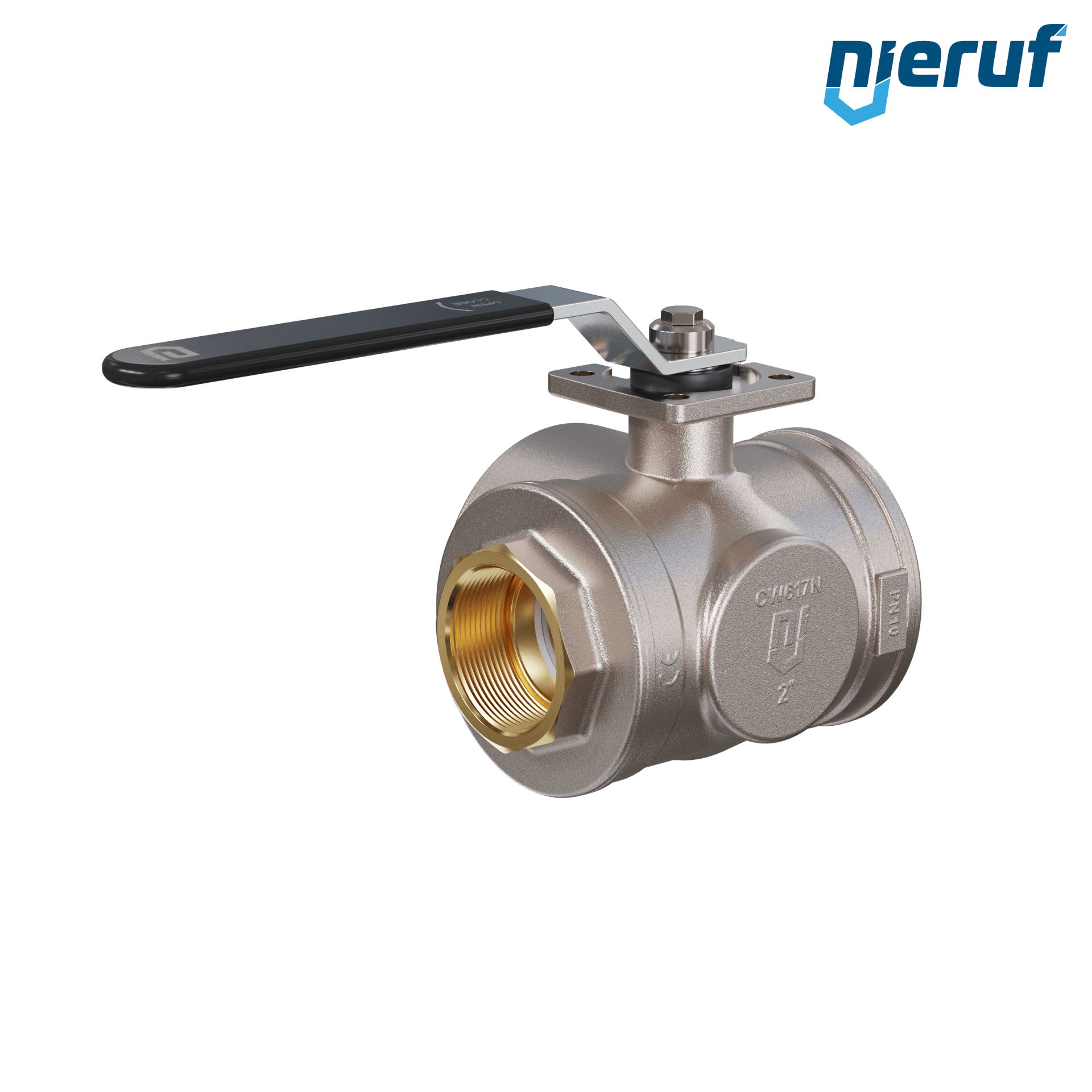 valvola a sfera a 3 vie in ottone DN50 - 2" pollici GK08 passaggio totale con incavo a forma di L