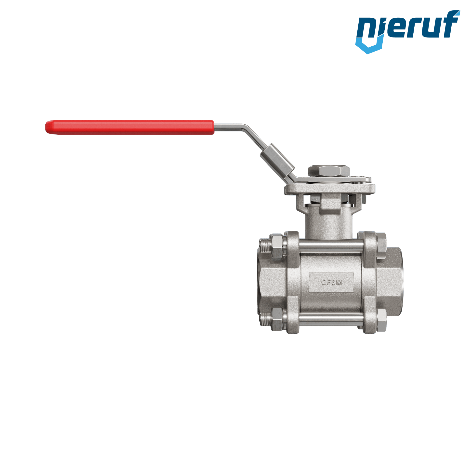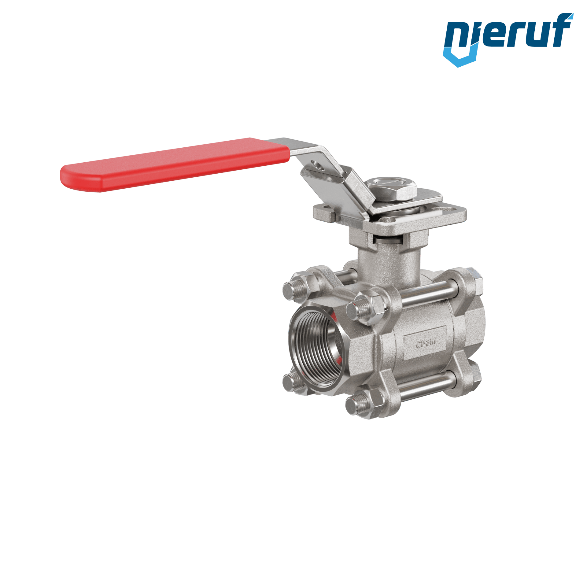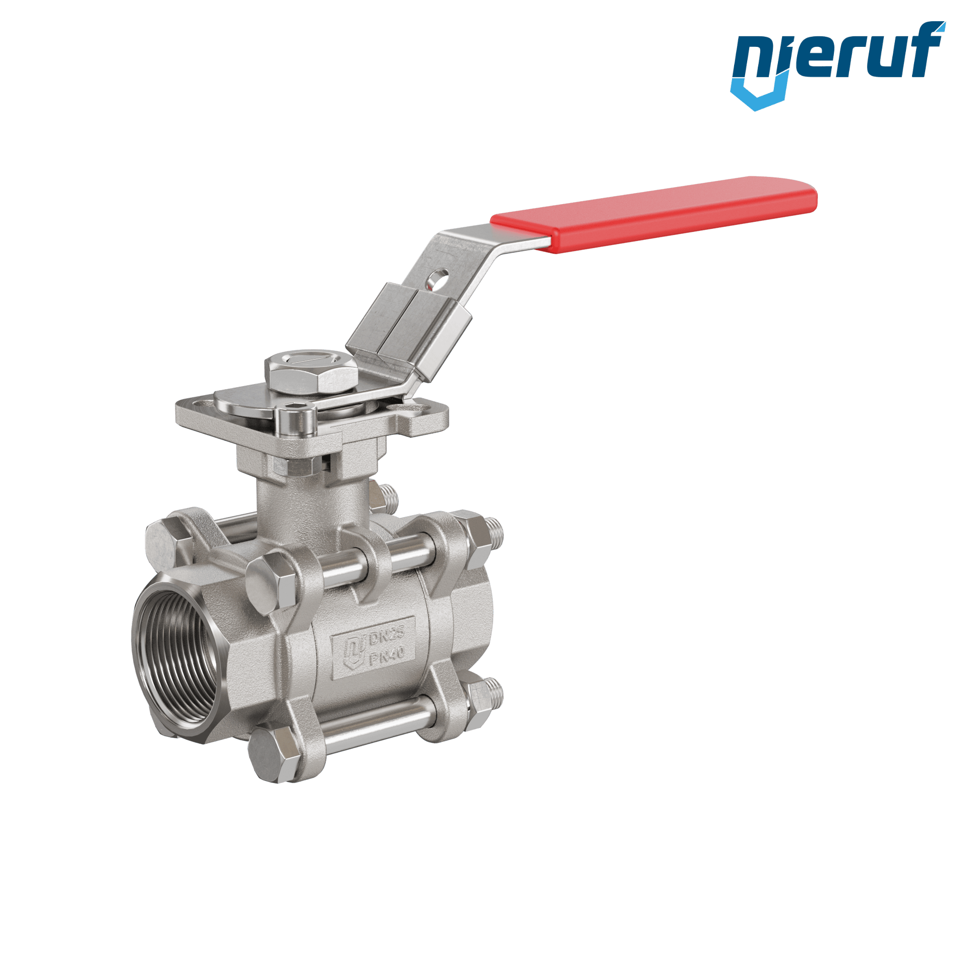 valvola a sfera a 2 vie a tre pezzi GK20 con una flangia per automazione conforme alla norma DIN ISO 5211 in acciaio inossidabile 1.4408 DN25 - 1" pollici filettatura interna NPT per fluidi liquidi e gassosi