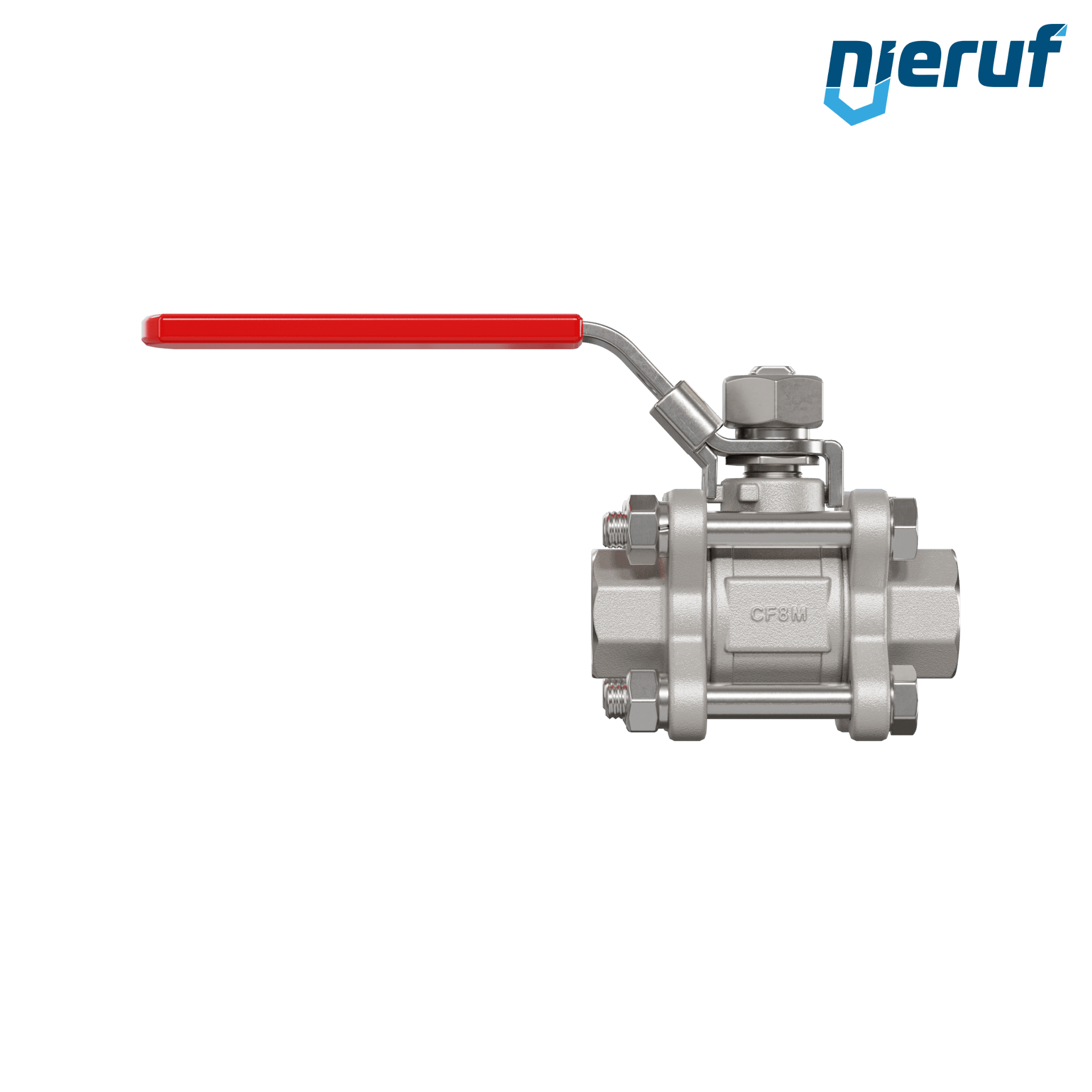 valvola a sfera a 2 vie a tre pezzi in acciaio inossidabile 1.4408 DN10 - 3/8" pollici filettatura interna per fluidi liquidi e gassosi