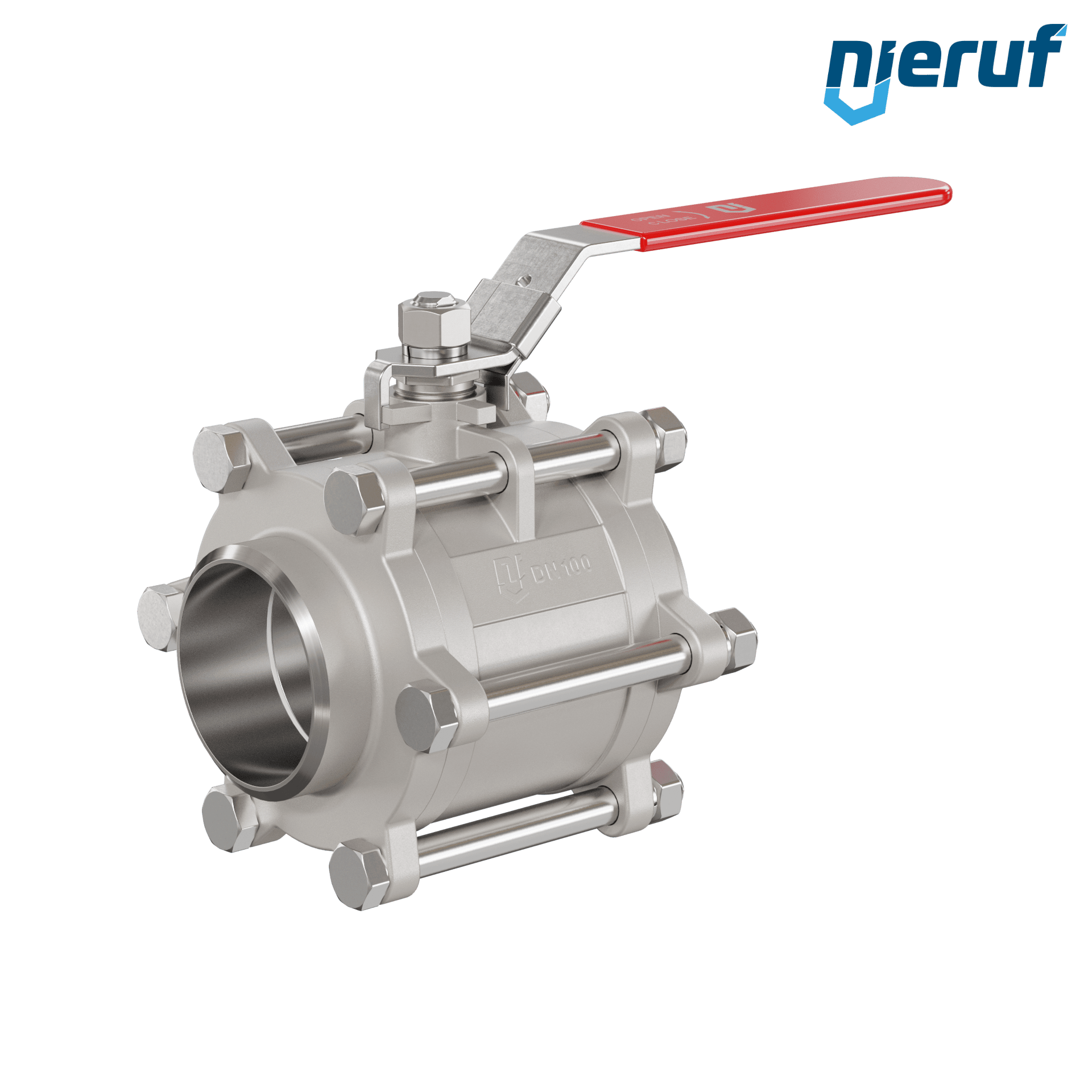 valvola a sfera a 2 vie a tre pezzi in acciaio inossidabile 1.4408 DN100 - 4" pollici con estremità a saldare per fluidi liquidi e gassosi