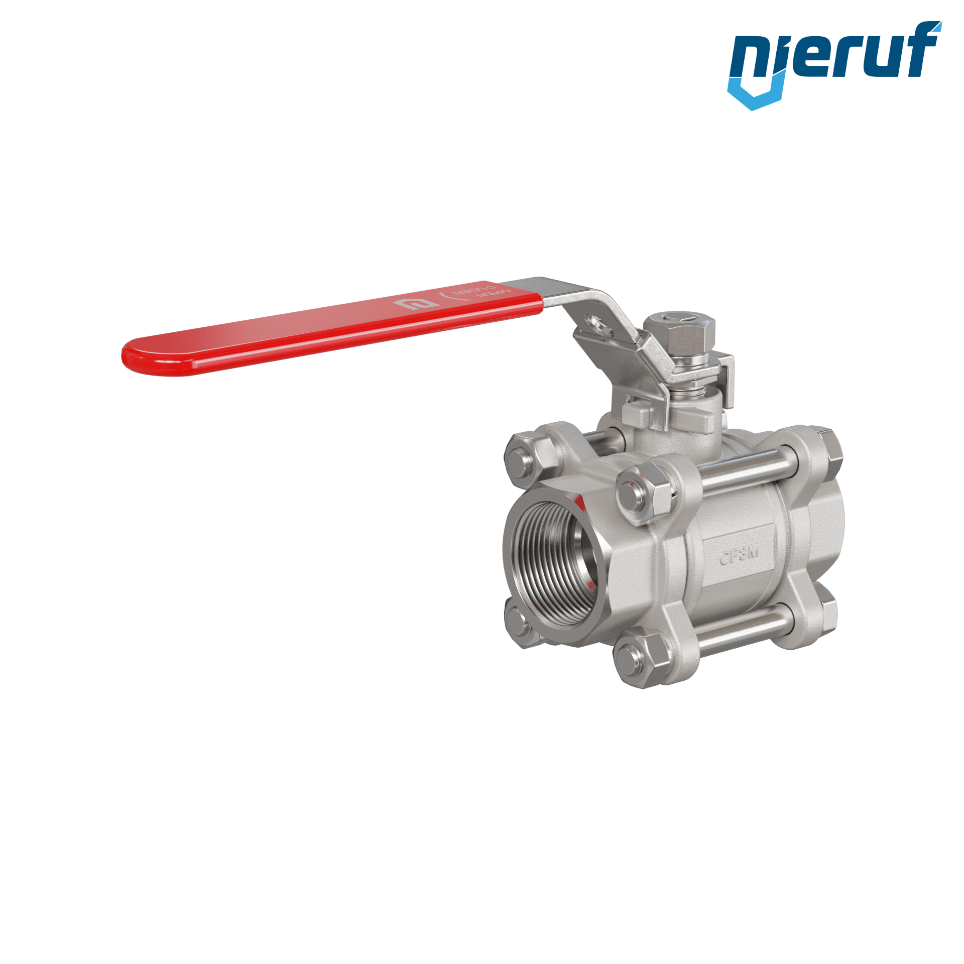 valvola a sfera a 2 vie a tre pezzi in acciaio inossidabile 1.4408 DN25 - 1" pollici filettatura interna per fluidi liquidi e gassosi