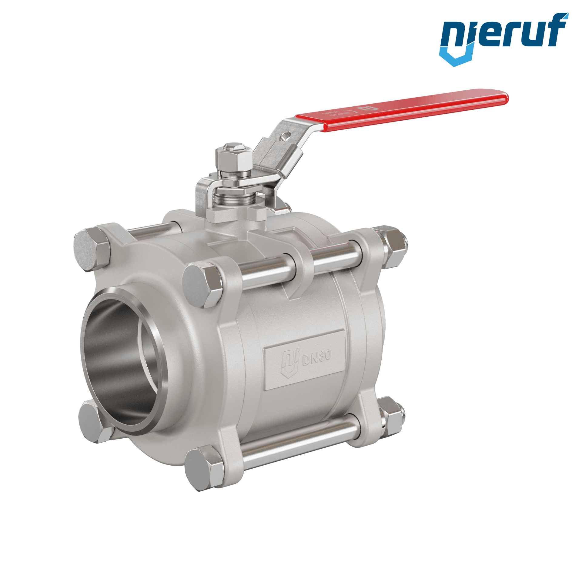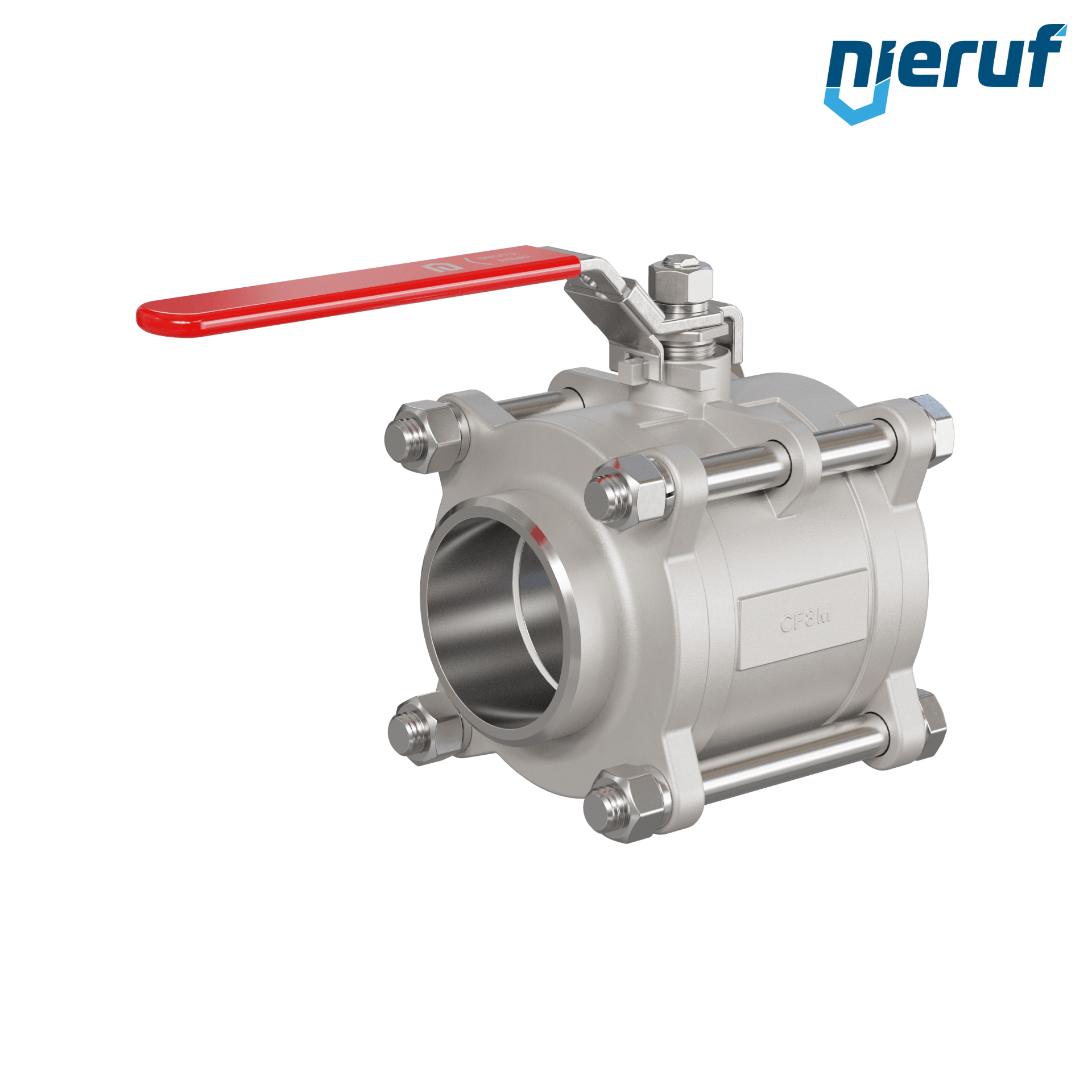valvola a sfera a 2 vie a tre pezzi in acciaio inossidabile 1.4408 DN80 - 3" pollici con estremità a saldare per fluidi liquidi e gassosi