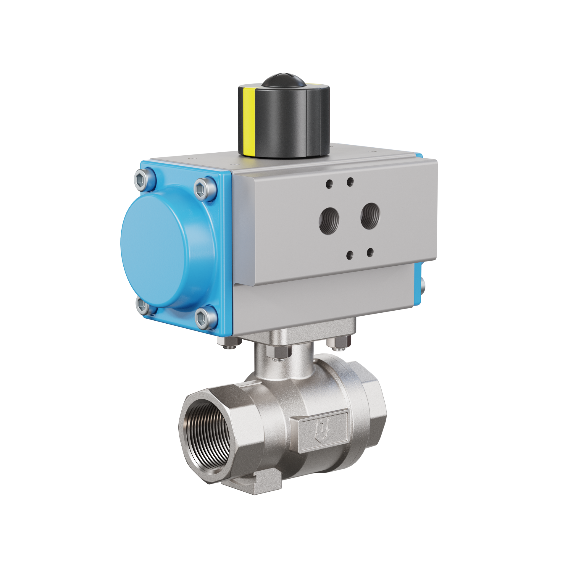 valvola a sfera con attuatore pneumatico DVGW W approvazione per l'acqua potabile DN25 - 1" pollici acciaio inossidabile 1.4408 PK02 attuatore pneumatico GD052 in alluminio (azionamento: GD = a doppio effetto)
