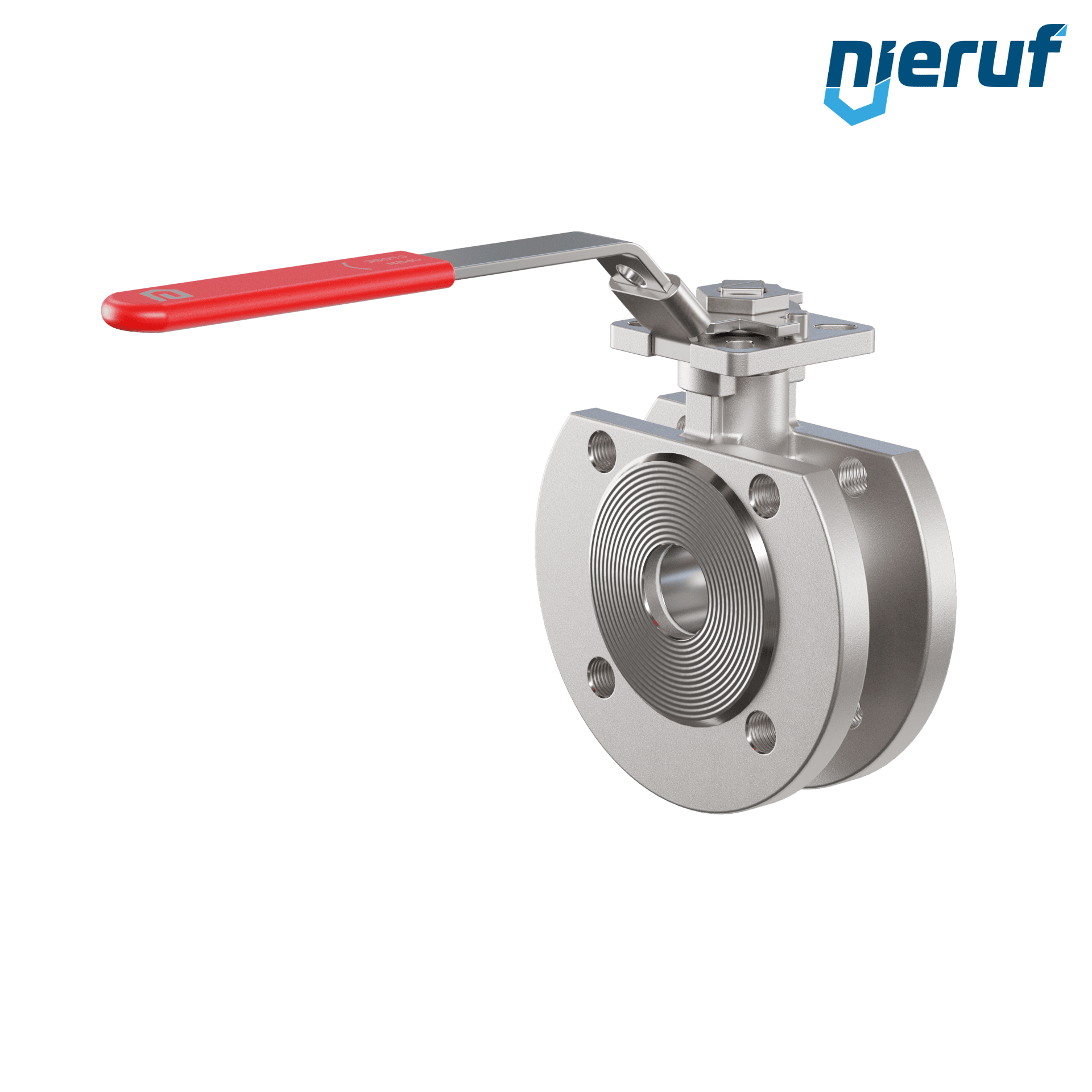 valvola a sfera dal design compatto DN25 PN16 in acciaio inossidabile 1.4408 con guarnizione in PTFE e attacco a flangia secondo DIN EN 1092-1 PN 16 per fluidi liquidi e gassosi