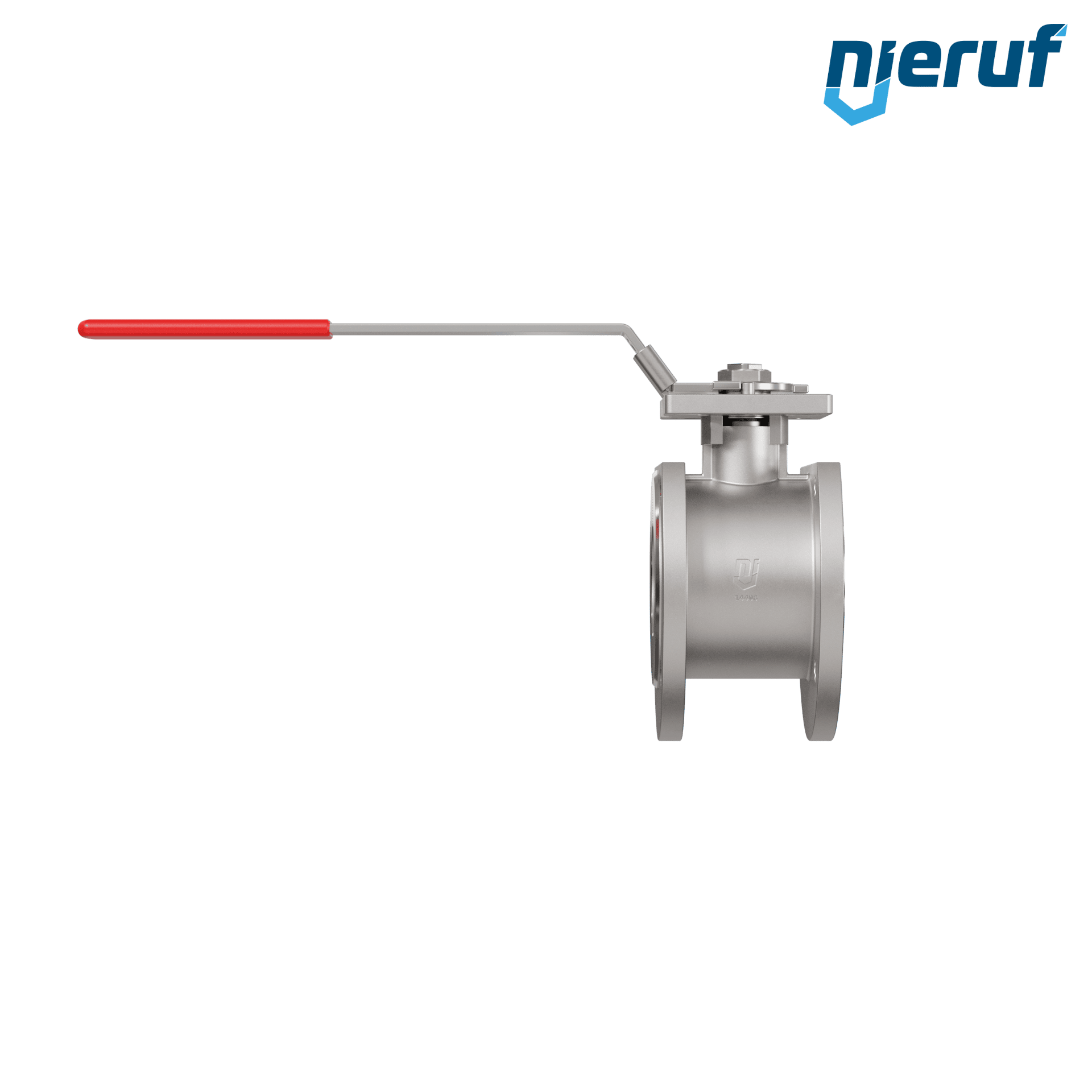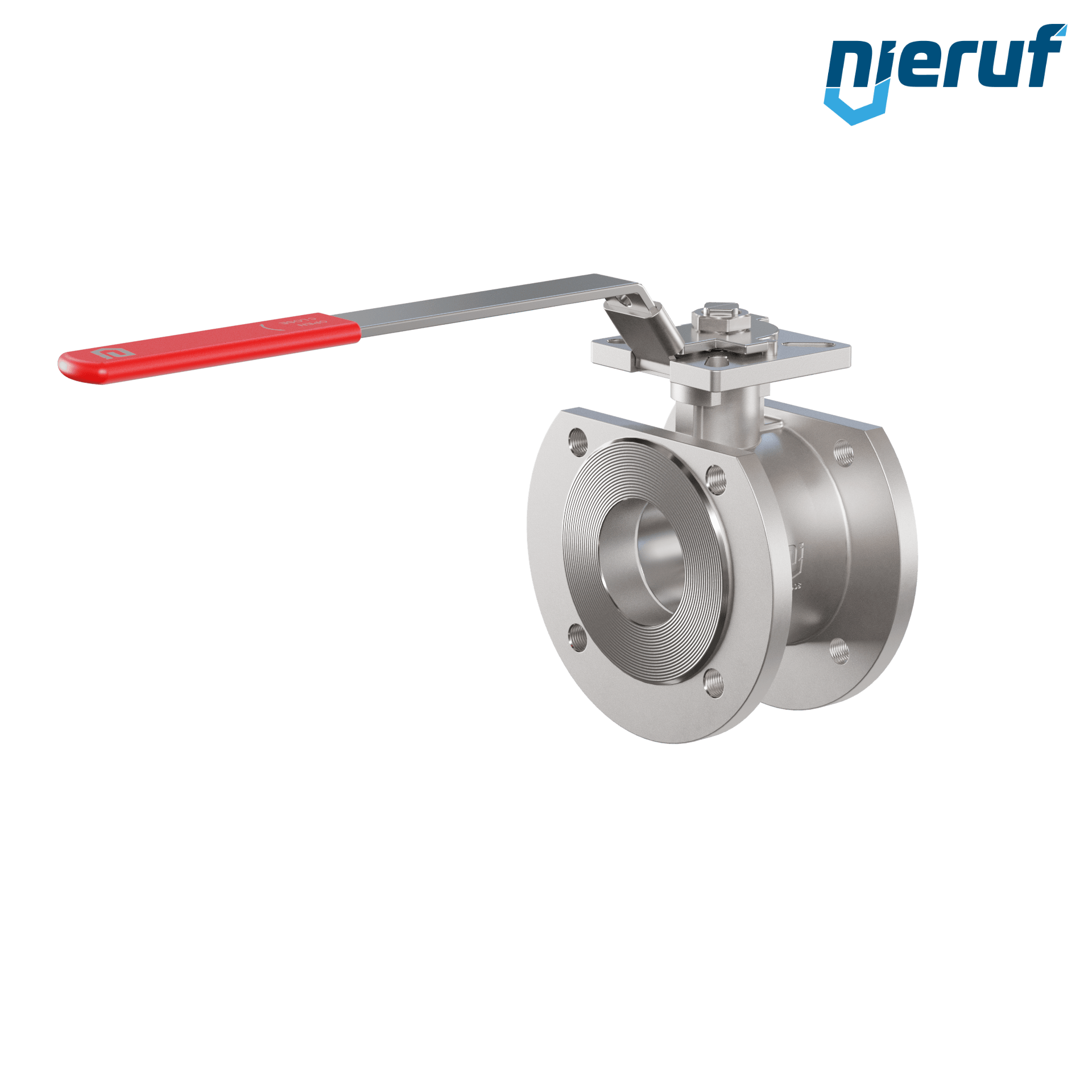 Valvola a sfera dal design compatto in acciaio inossidabile con leva e sfera in acciaio inossidabile. Flange con foro passante metrico per il bloccaggio di fluidi all'interno di un impianto.