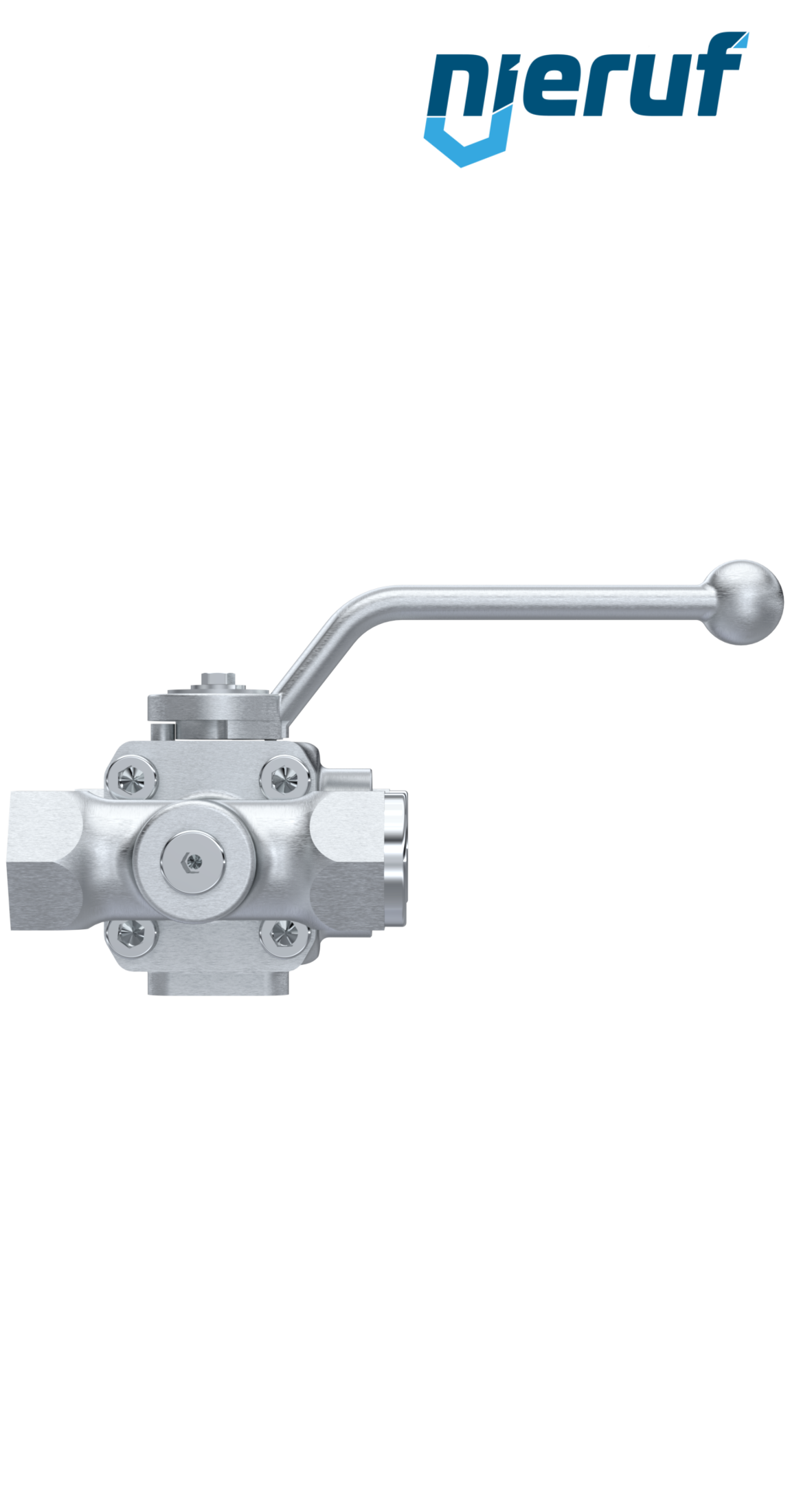 valvola a sfera deviatrice DN25 - 1" pollici acciaio inossidabile 1.4408 GK16 leva a mano con incavo a forma di L per fluidi liquidi, gassosi & gas liquefatti criogenici