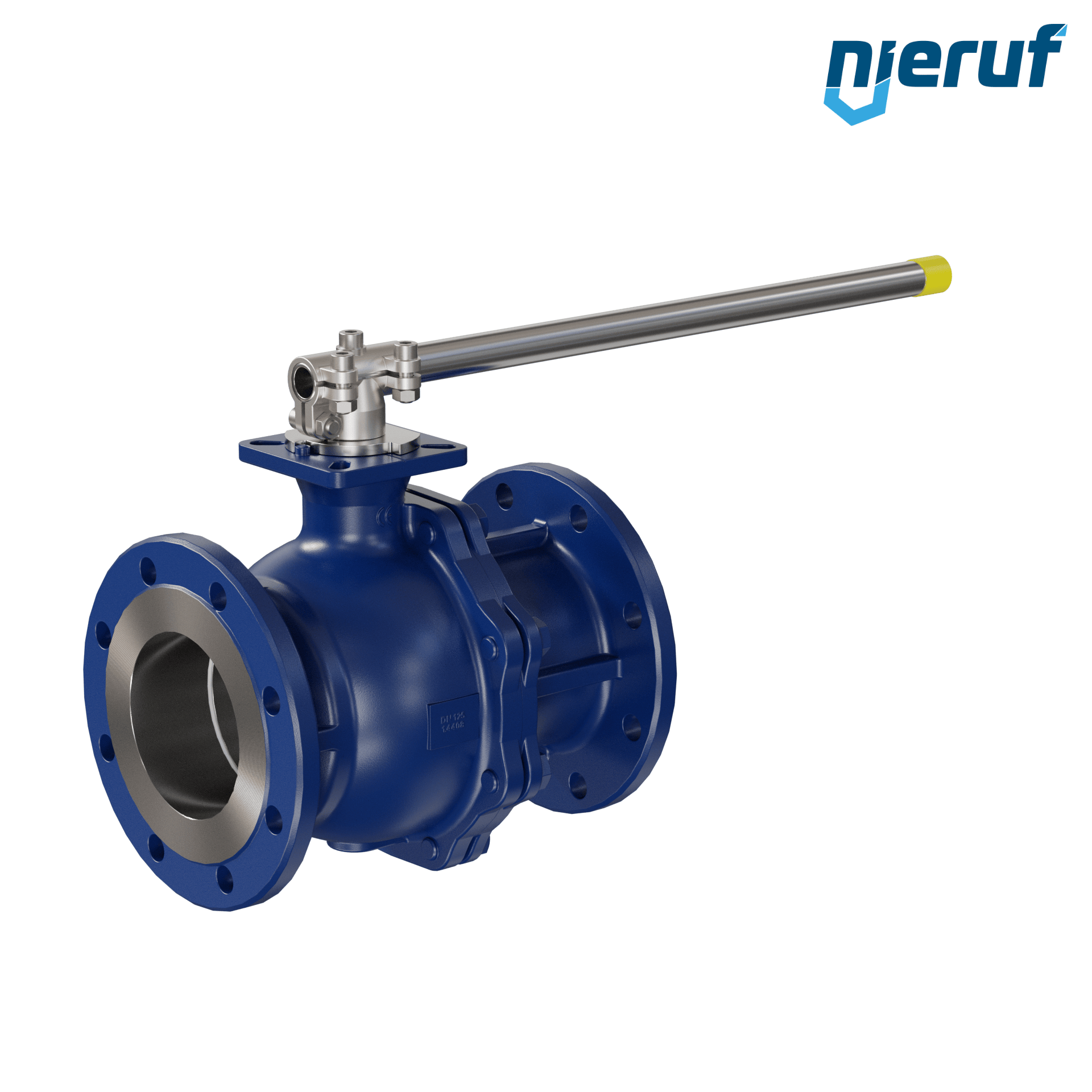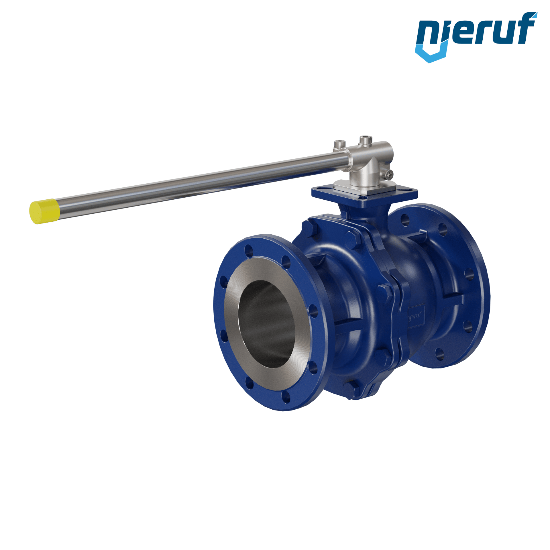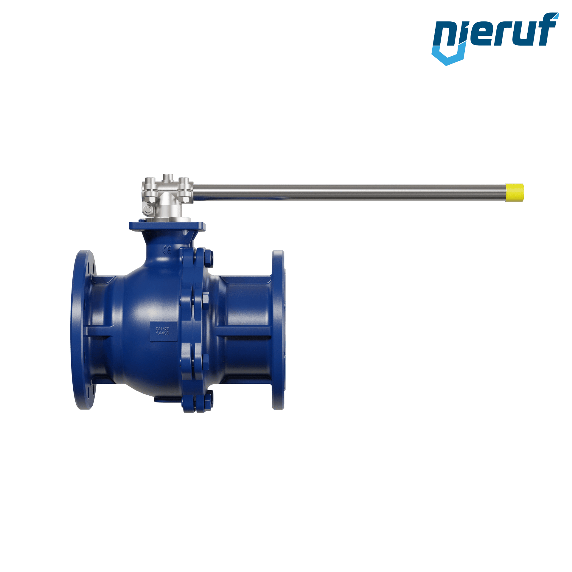 questa valvola a sfera di alta qualità è realizzata in acciaio al carbonio con stelo a prova di esplosione. Corpo valvola in 2 pezzi con flangia di montaggio secondo DIN ISO 5211. L'estensione dello stelo è in acciaio. La guarnizione dello stelo è coperta su tre lati.