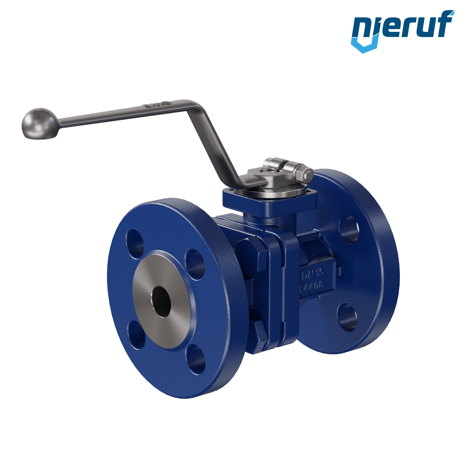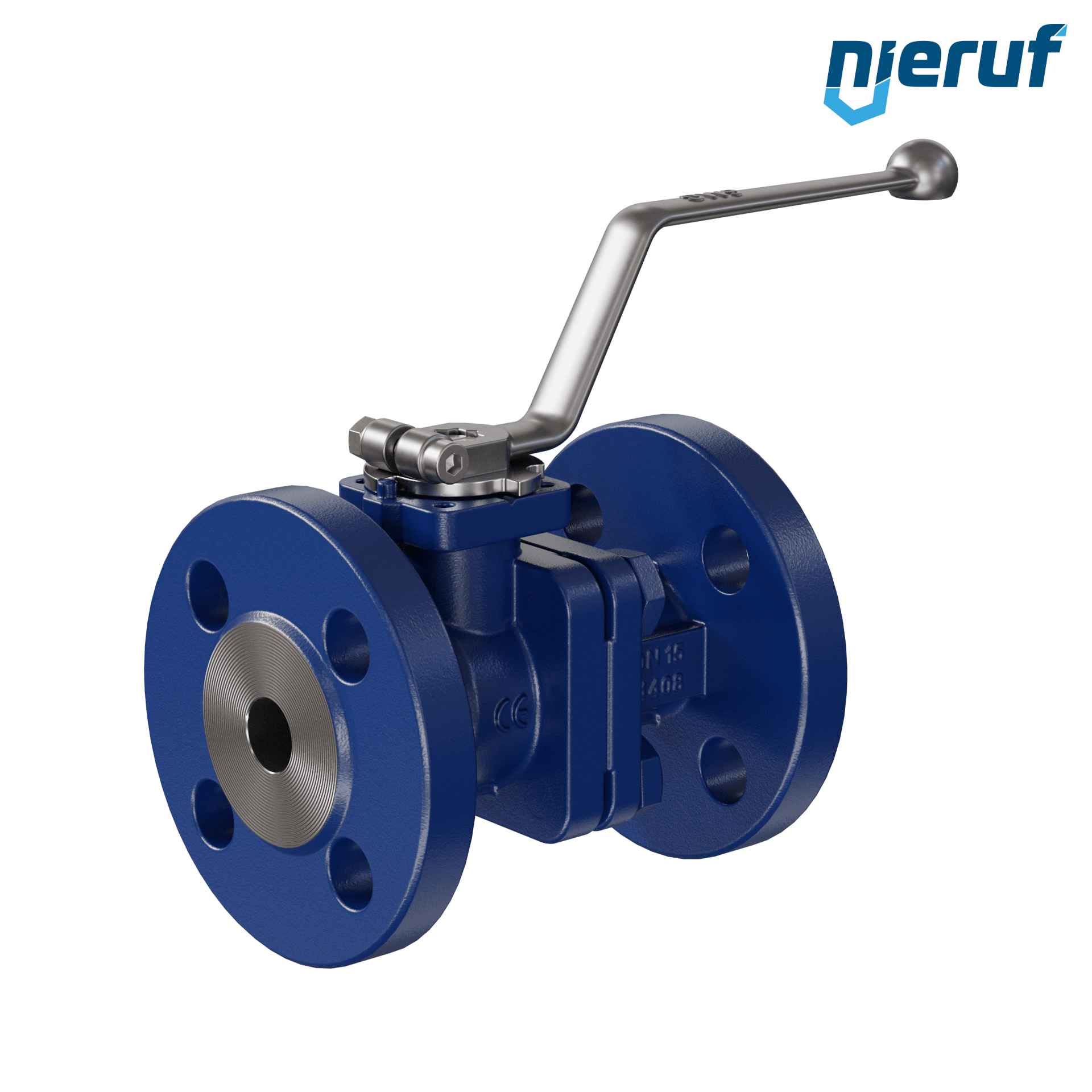 valvola a sfera flangiata Fire Safe (antincendio) DN15 PN16 FK12 corpo in acciaio fuso 1.0619 sfera in acciaio inossidabile 1.4408 guarnizione PTFE / GF per fluidi liquidi e gassosi