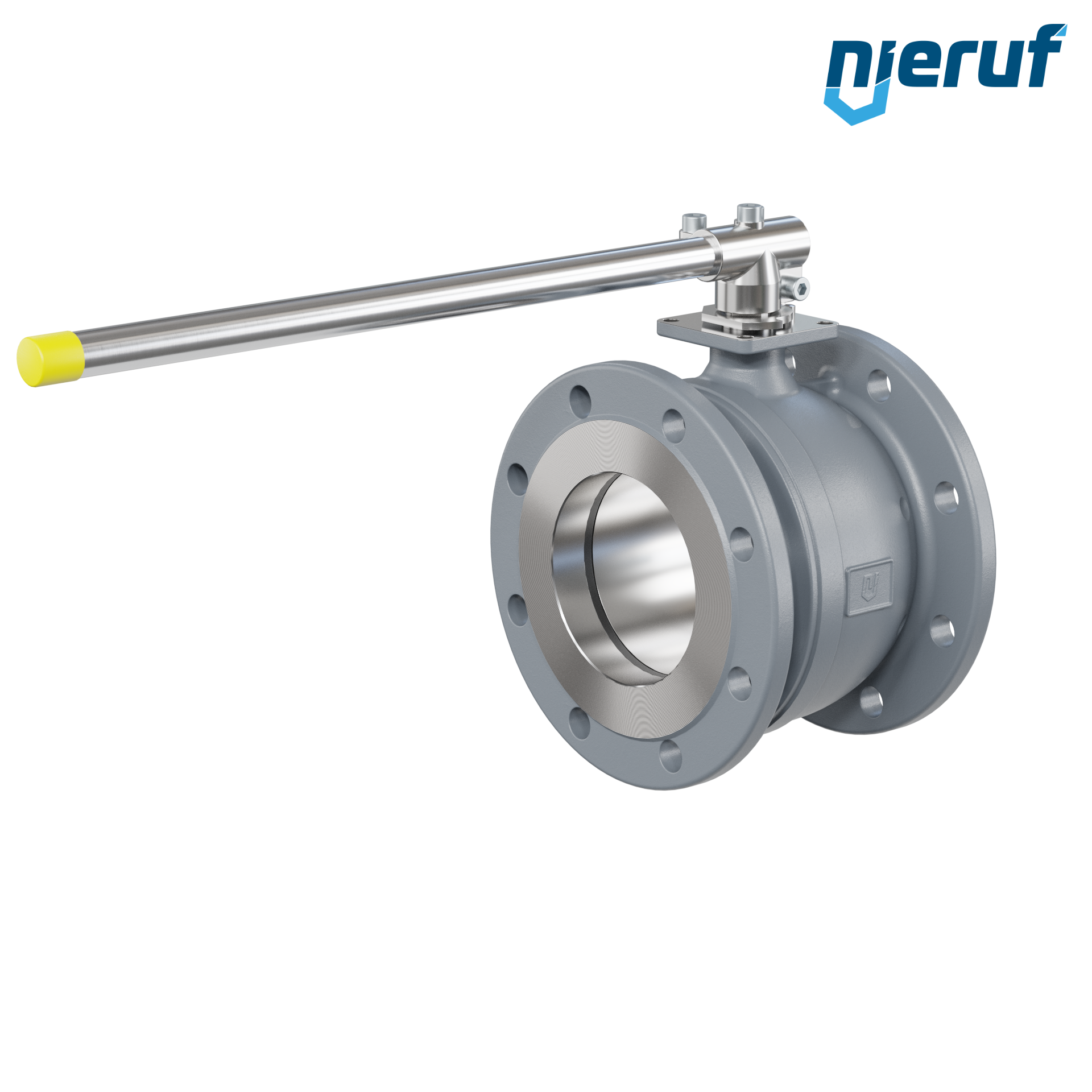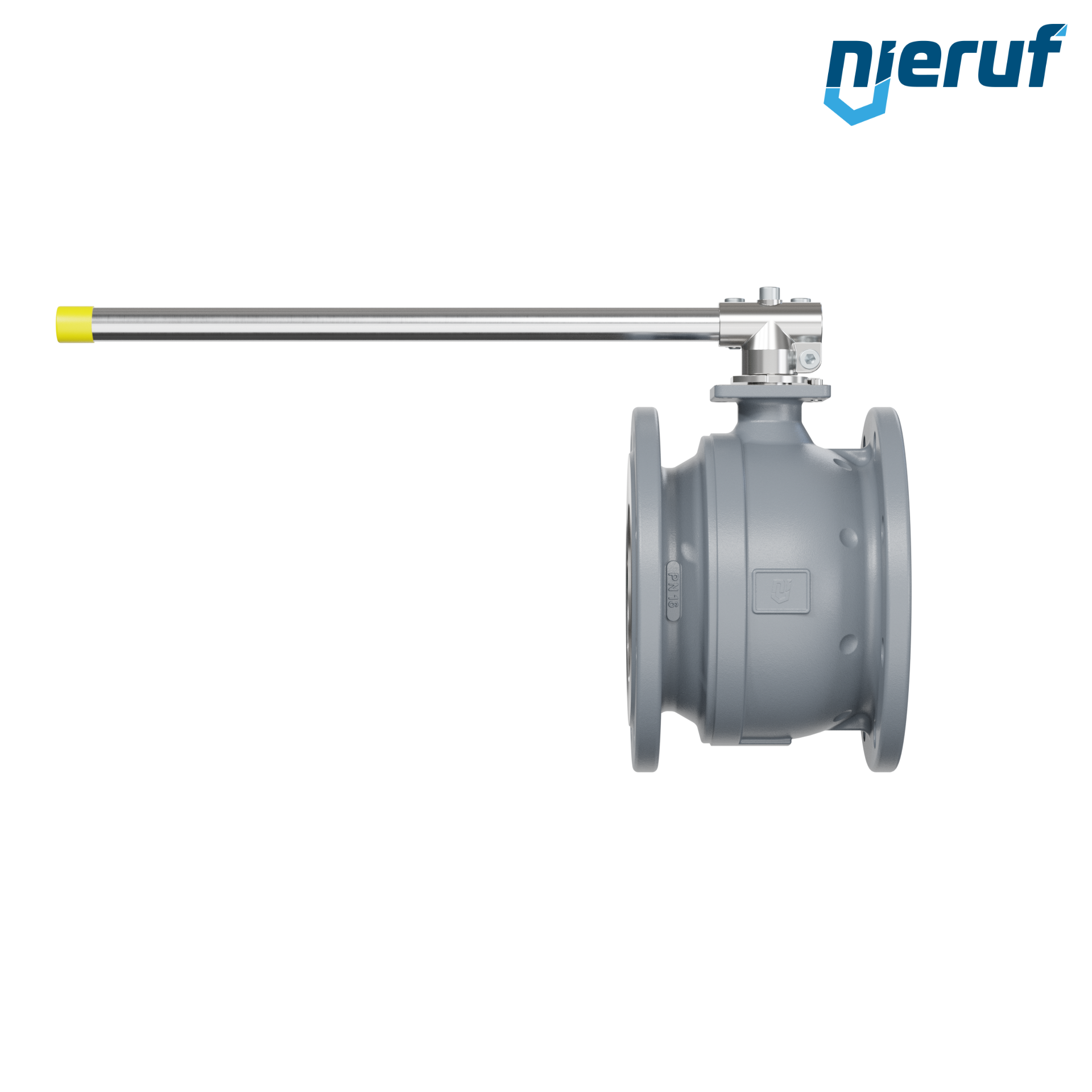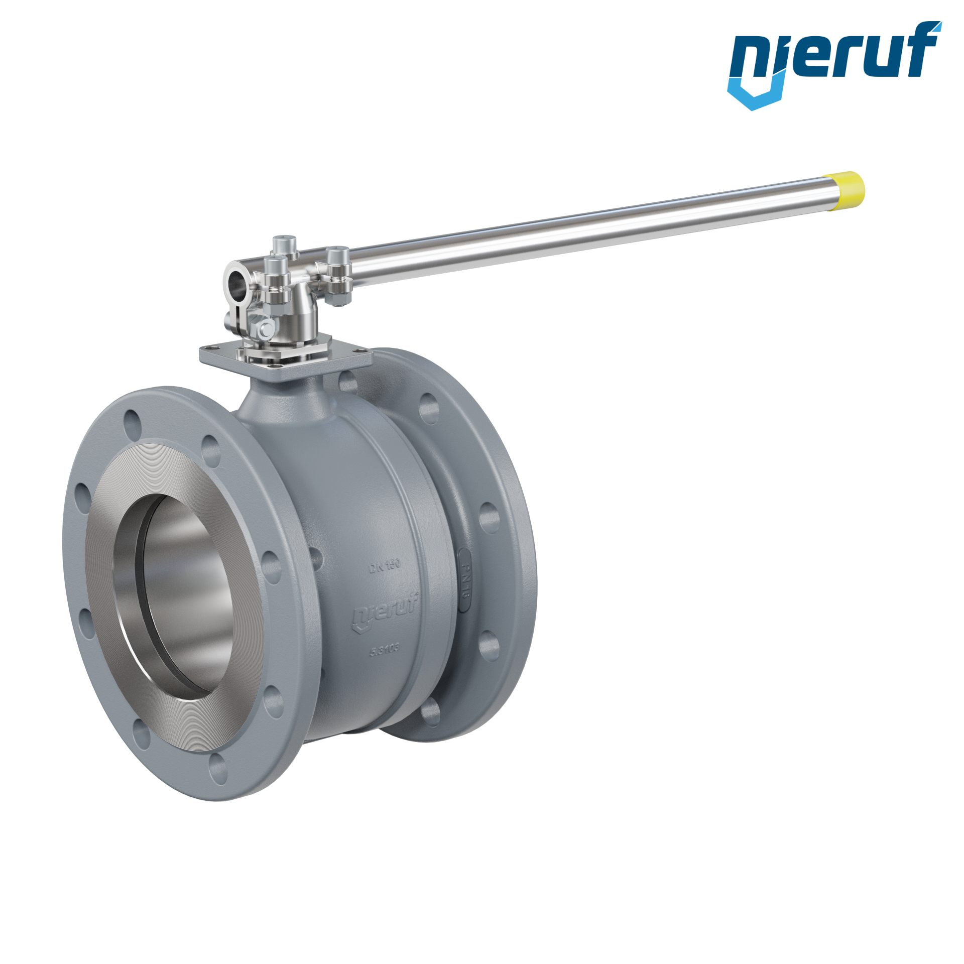 questa valvola a sfera di alta qualità in ghisa sferoidale con design antincendio è composta da un corpo a due pezzi, la sfera è in acciaio cromato ed ha un attacco a flangia secondo DIN EN 1092-2 B1.