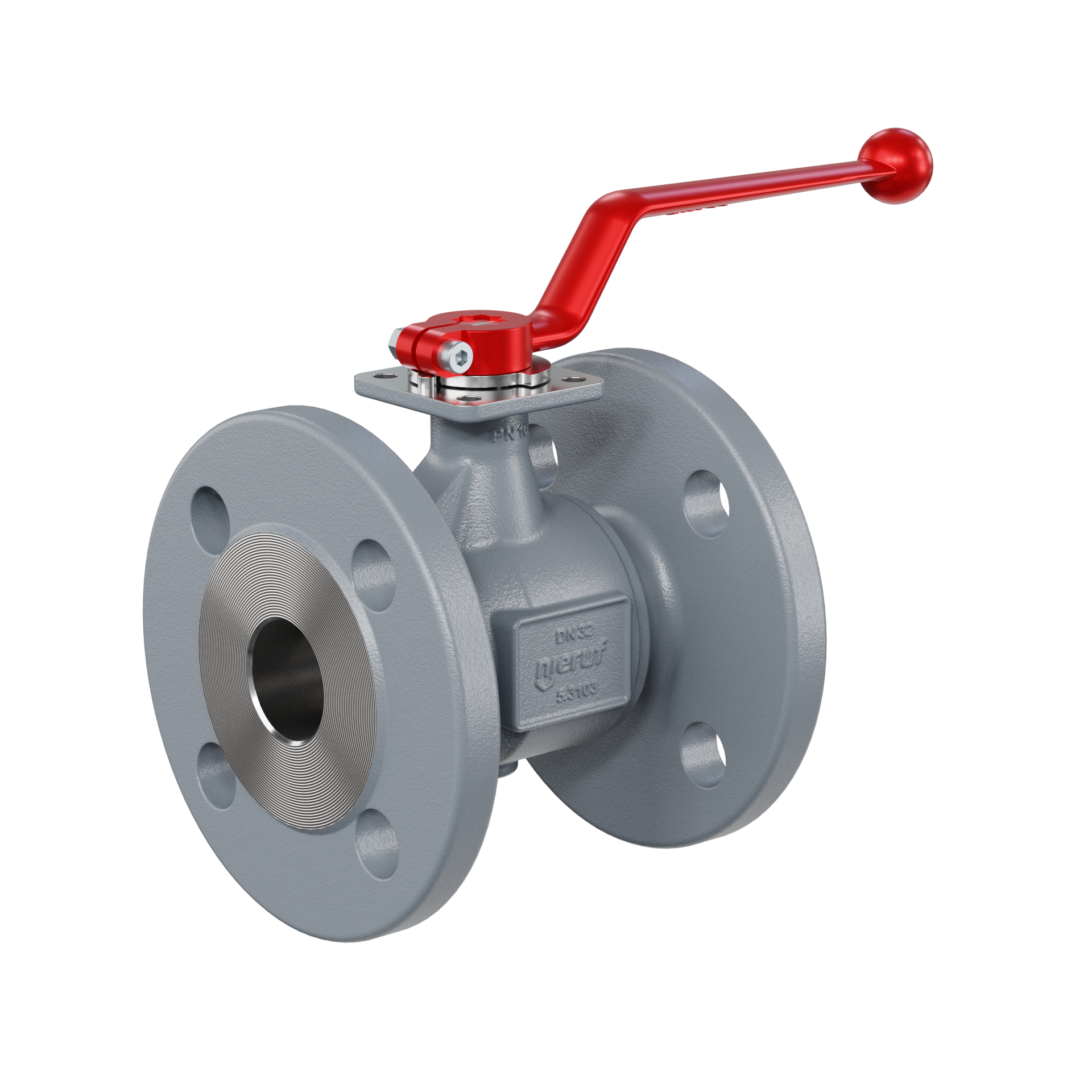 valvola a sfera flangiata DN32 FK01 corpo in ghisa sferoidale GJS 400-18 sfera in acciaio cromato guarnizione PTFE / GF per fluidi liquidi e gassosi