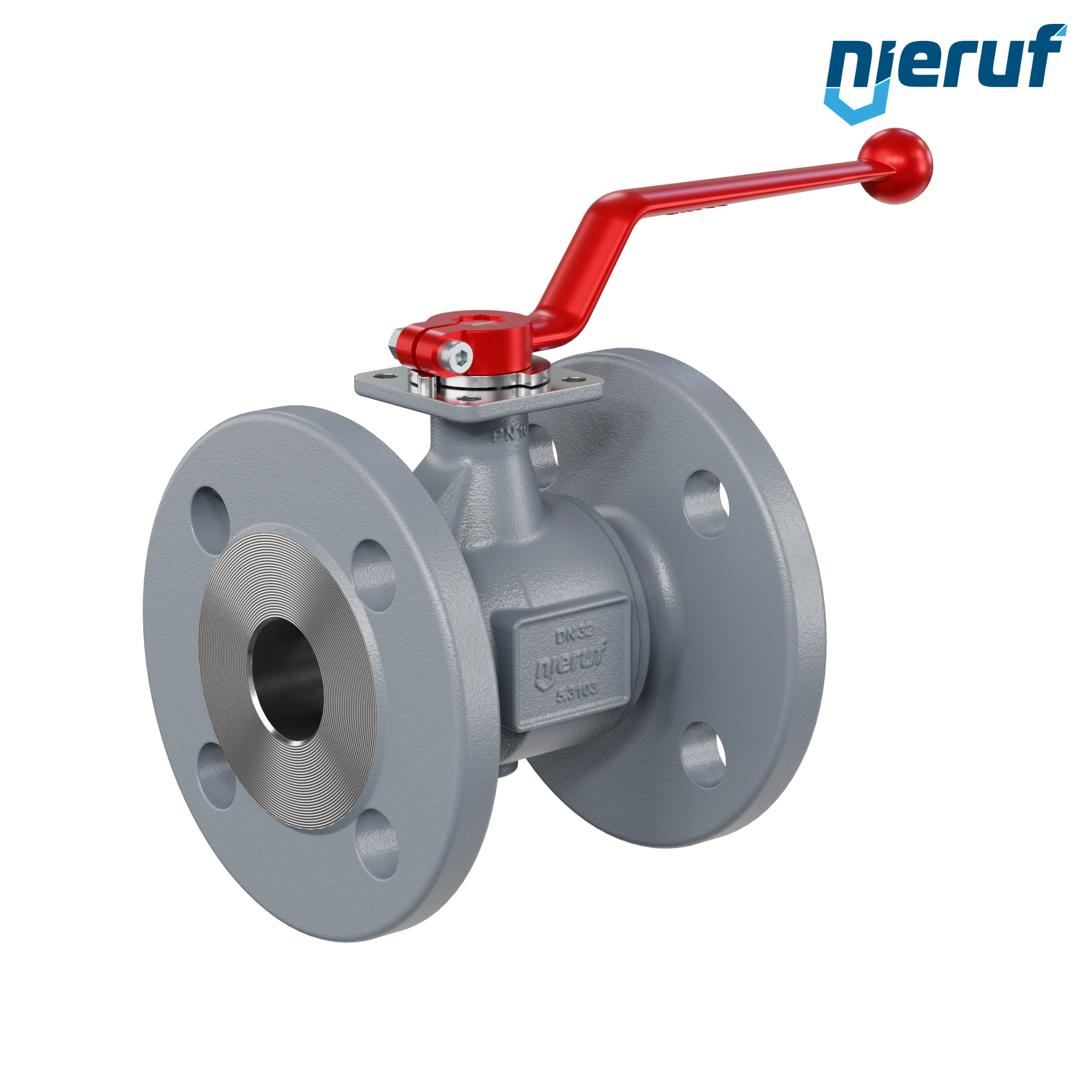 valvola a sfera flangiata DN32 FK02 corpo in ghisa sferoidale GJS 400-18 sfera interamente in acciaio inossidabile 1.4408 guarnizione PTFE / GF per fluidi liquidi e gassosi
