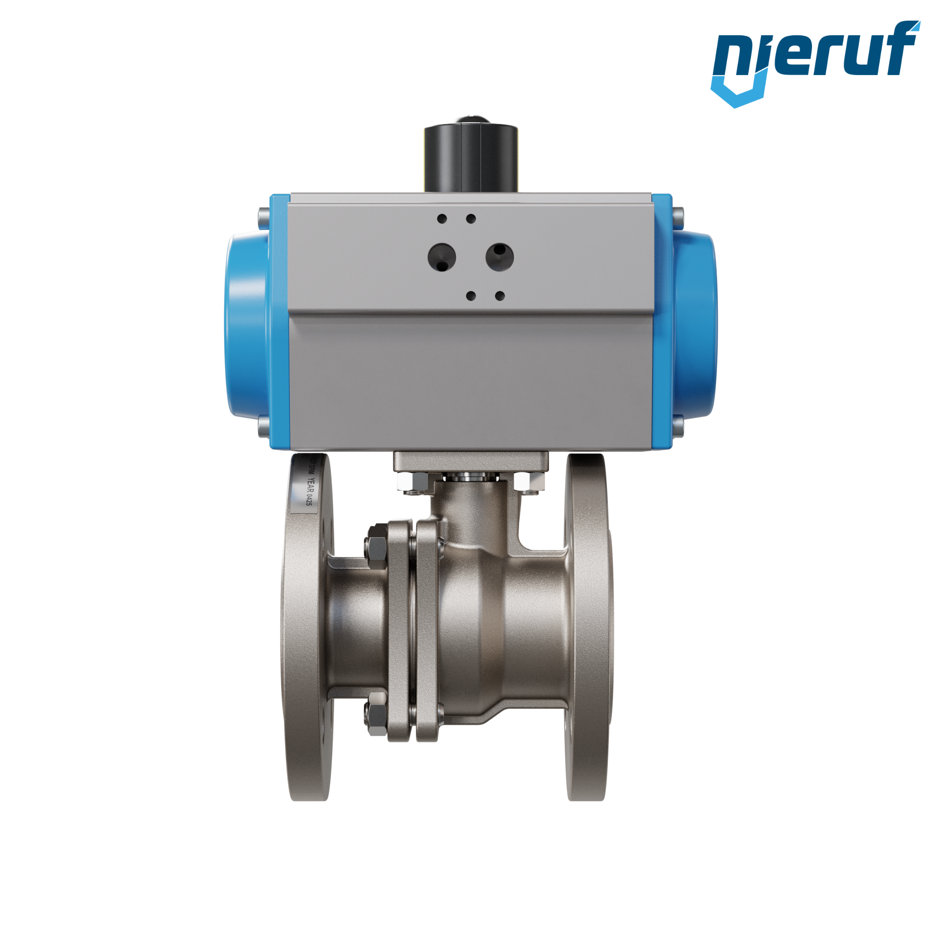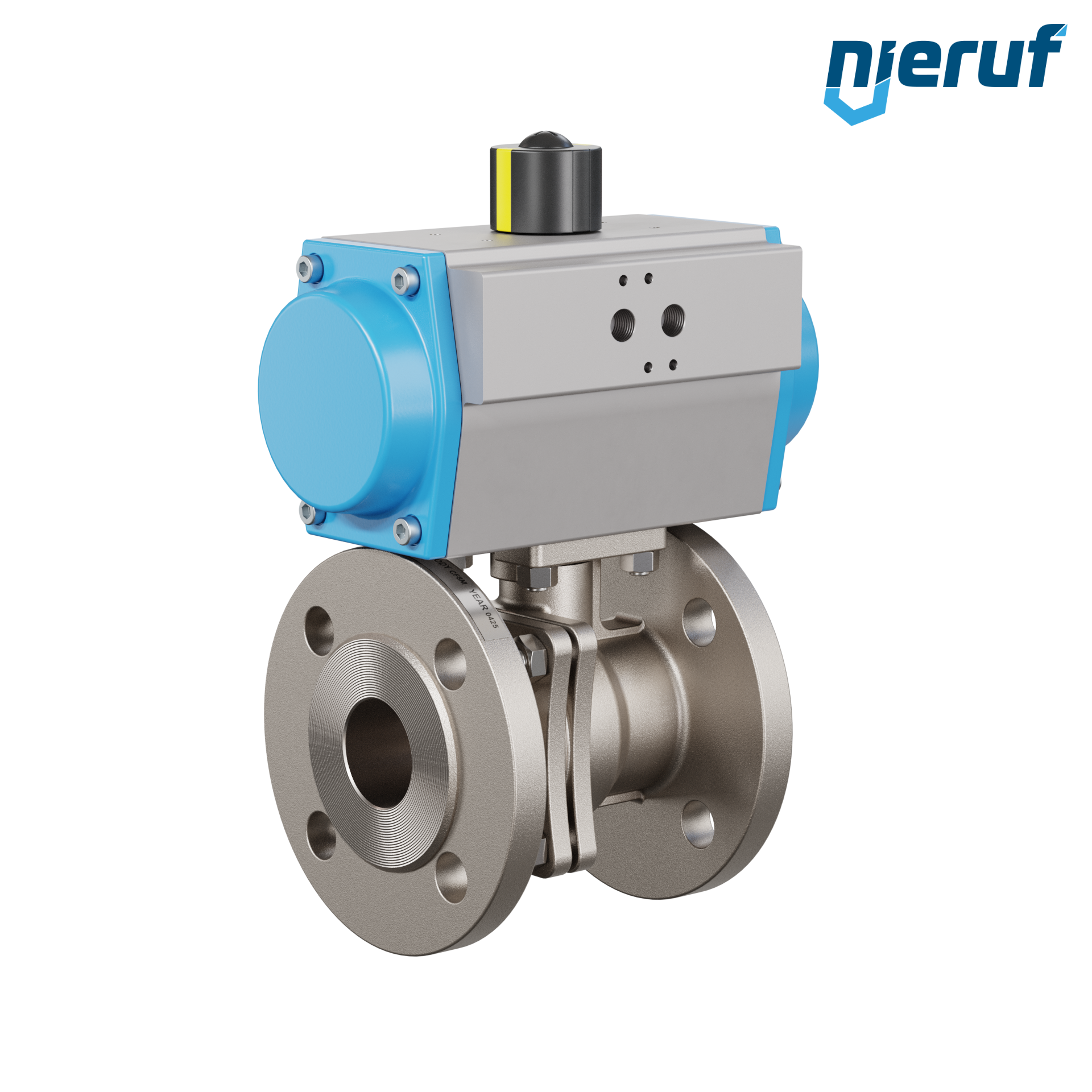 valvola a sfera flangiata DN40 acciaio inossidabile 1.4408 PK05 azionamento rotativo pneumatico GS083 in alluminio (funzionamento: GS = a effetto semplice - apertura a molla)