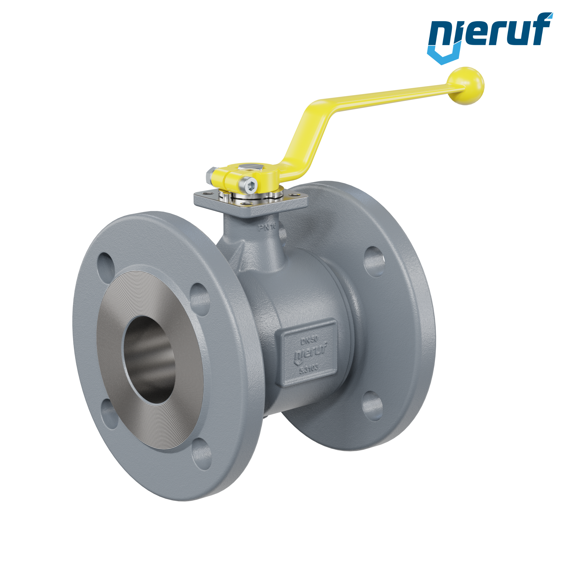 valvola a sfera flangiata DN50 FK02 corpo in ghisa sferoidale GJS 400-18 sfera interamente in acciaio inossidabile 1.4408 guarnizione PTFE certificazione DVGW-gas