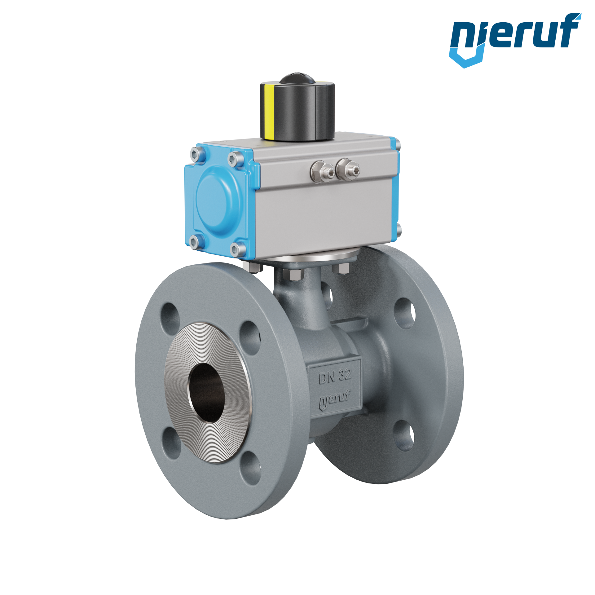 valvola a sfera flangiata automatica DN32 - 1 1/4" pollici ghisa sferoidale GGG 40 PK04 azionamento rotativo pneumatico GD040 in alluminio (funzionamento: GD = a doppio effetto)