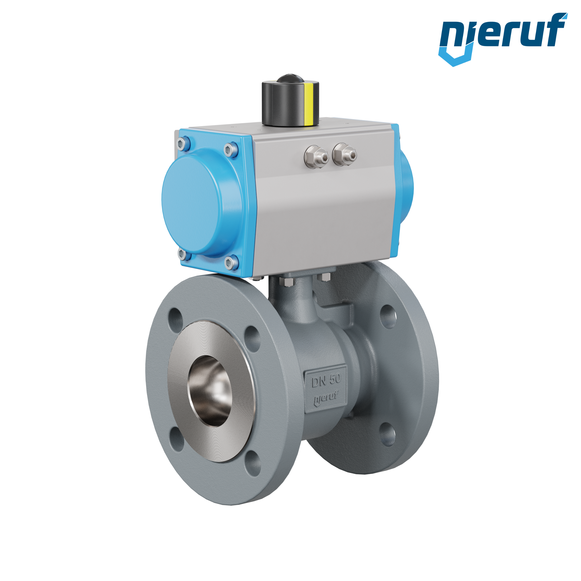 valvola a sfera flangiata automatica DN50 - 2" pollici ghisa sferoidale GGG 40 PK04 azionamento rotativo pneumatico GS075 in alluminio (funzionamento: GS = a effetto semplice)