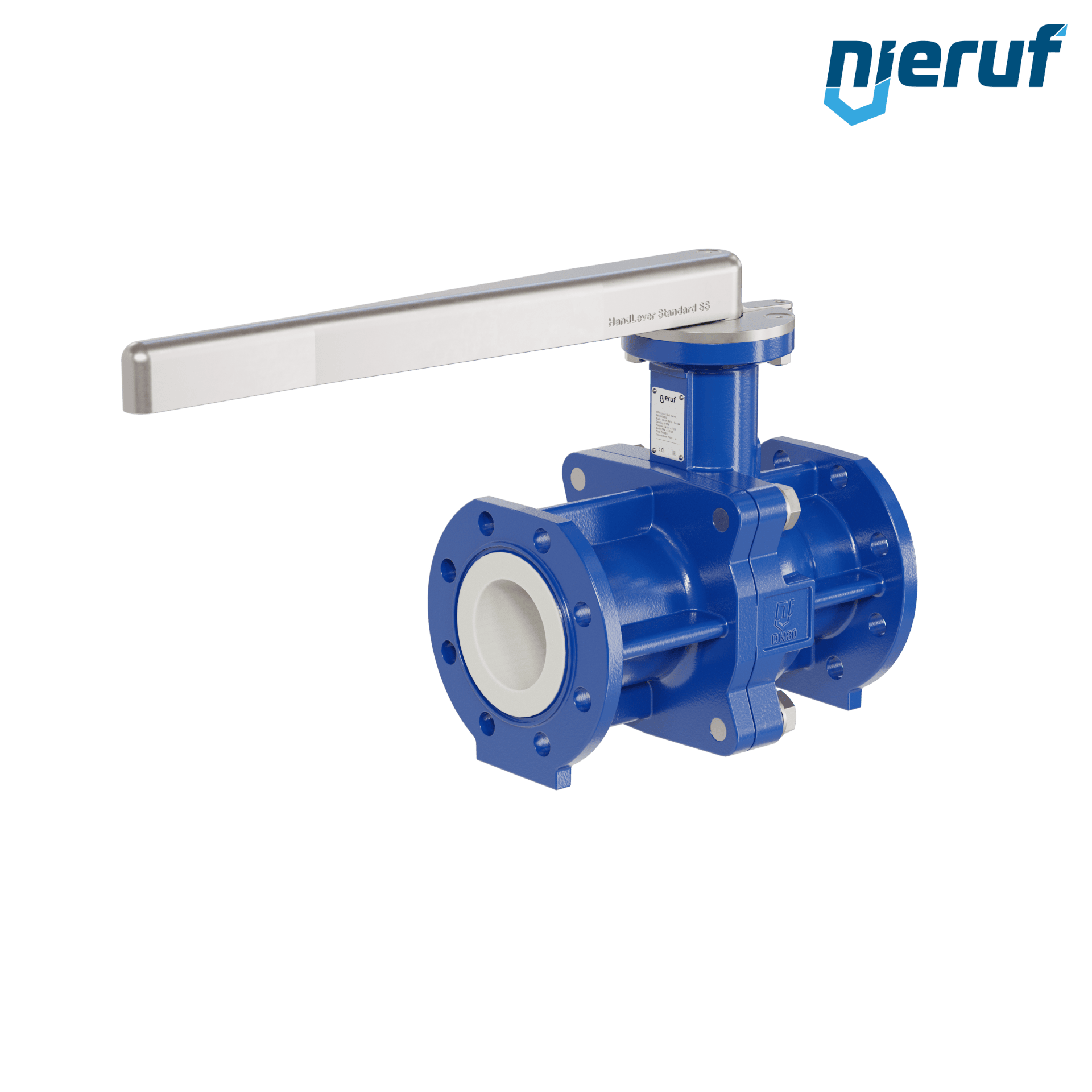 valvola a sfera flangiata PFA FK13 DN80 - 3" pollici PN10/16 corpo in ghisa sferoidale 5.3103 sfera in PFA guarnizione in PTFE per fluidi liquidi, gassosi e aggressivi con leva in acciaio