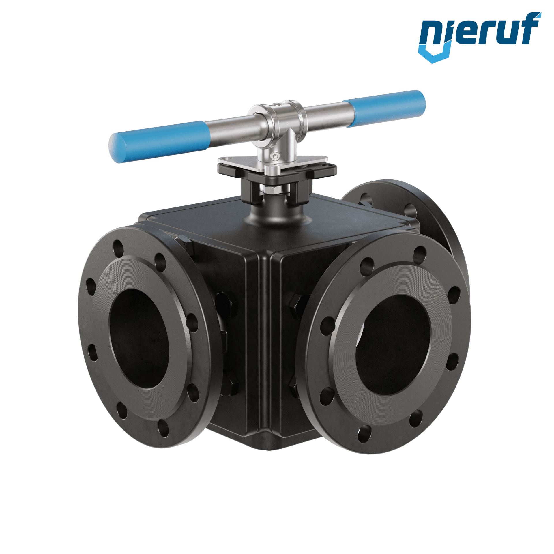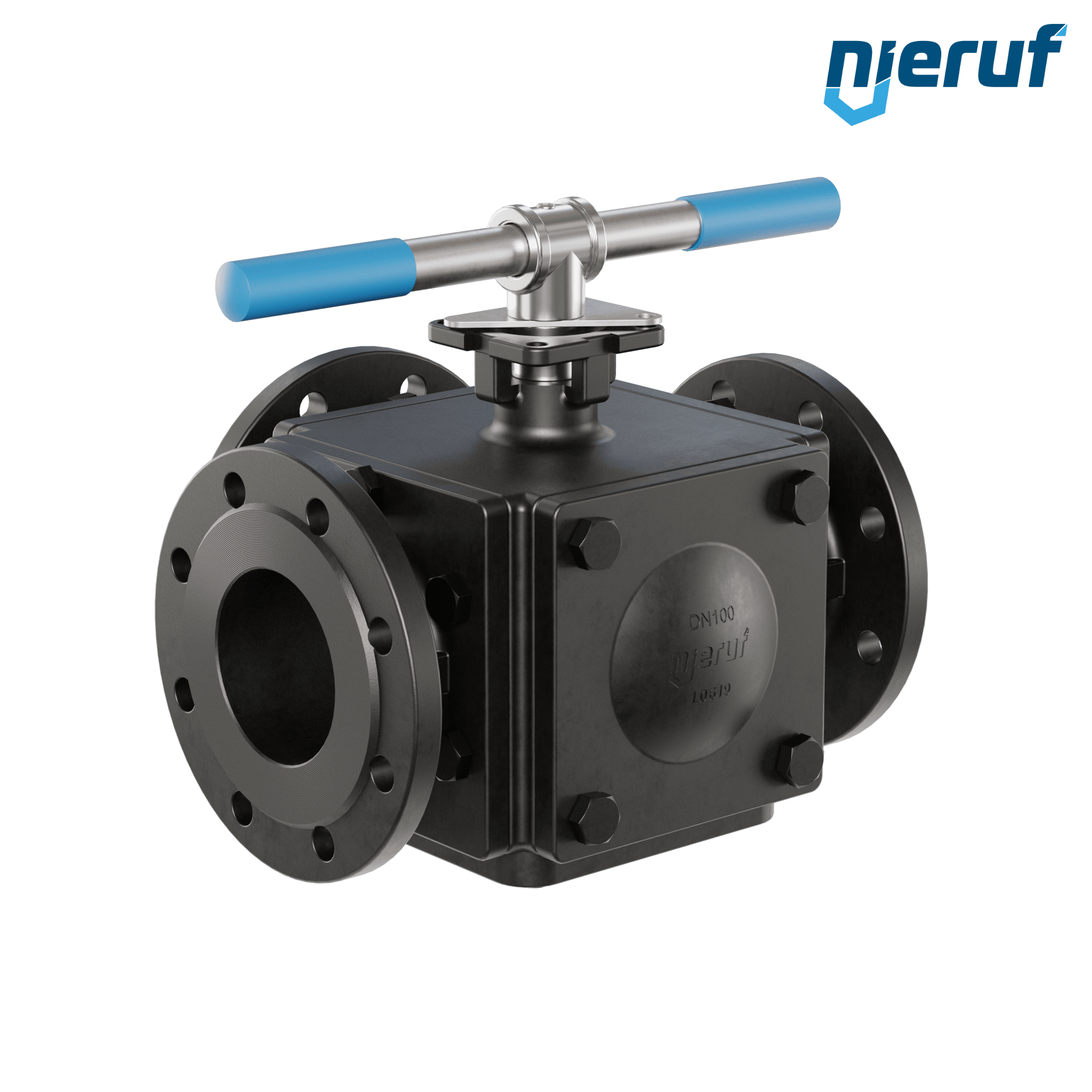 valvola a sfera flangiata a tre vie DN100 PN16 FK08 corpo in acciaio fuso 1.0619 sfera in acciaio fuso 1.4308 guarnizione TFM 1600 / PTFE incavo a forma di T