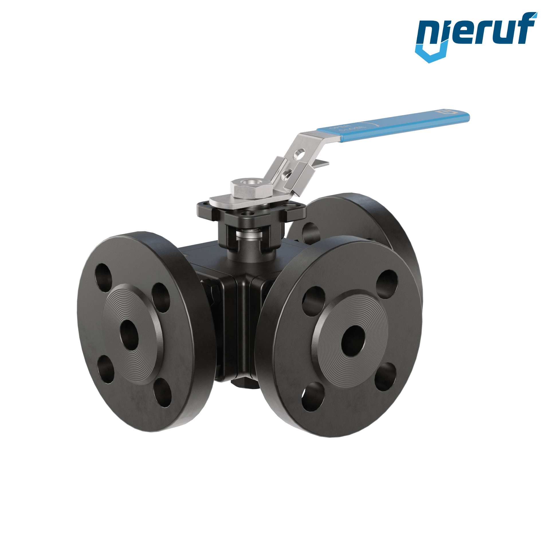 valvola a sfera flangiata a tre vie DN15 PN16/40 FK08 corpo in acciaio fuso 1.0619 sfera in acciaio fuso 1.4308 guarnizione TFM 1600 / PTFE incavo a forma di L