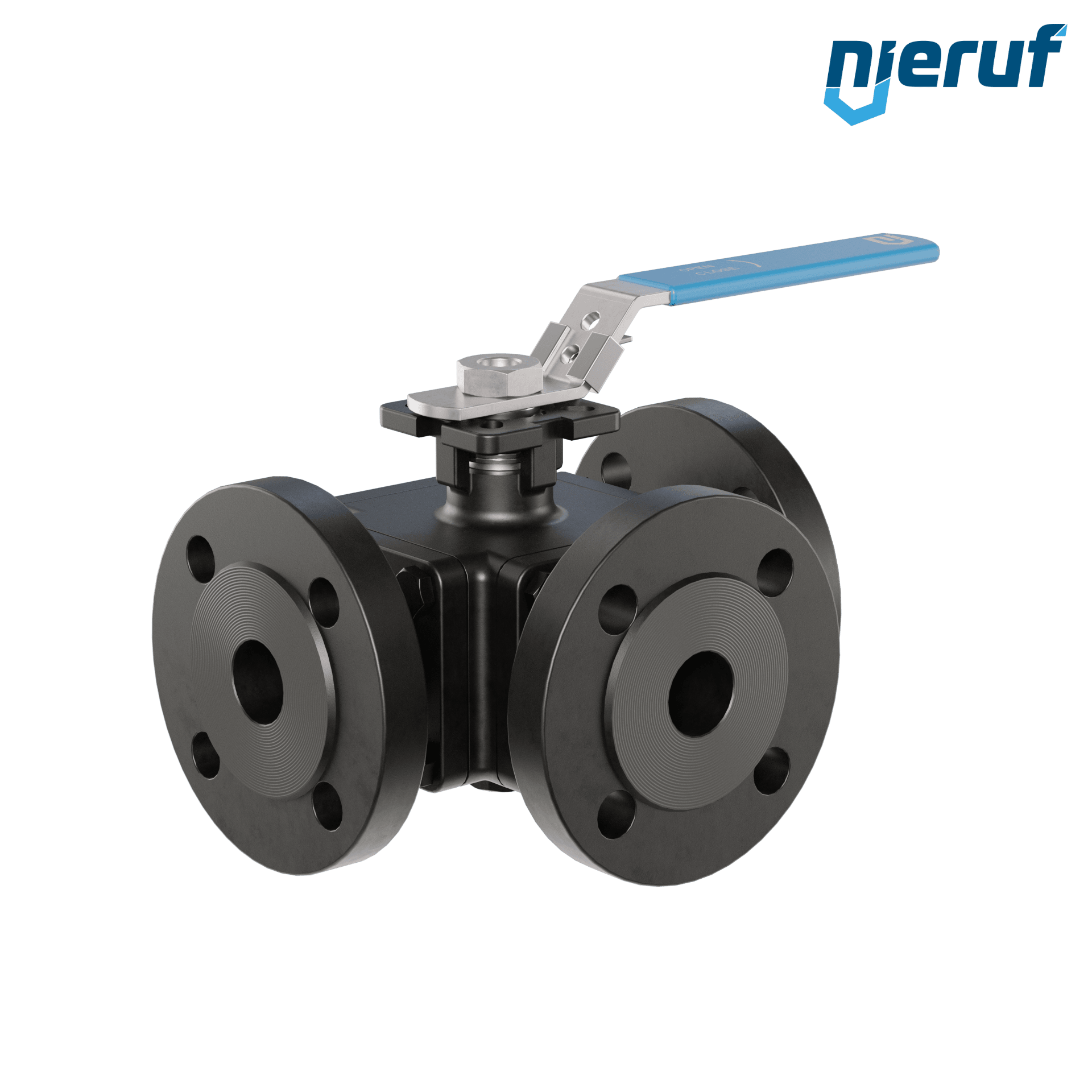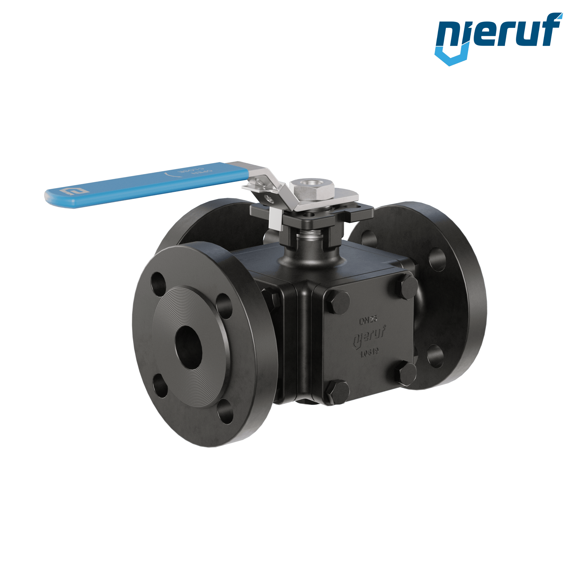 valvola a sfera flangiata a tre vie DN25 PN16/40 FK08 corpo in acciaio fuso 1.0619 sfera in acciaio fuso 1.4308 guarnizione TFM 1600 / PTFE incavo a forma di T