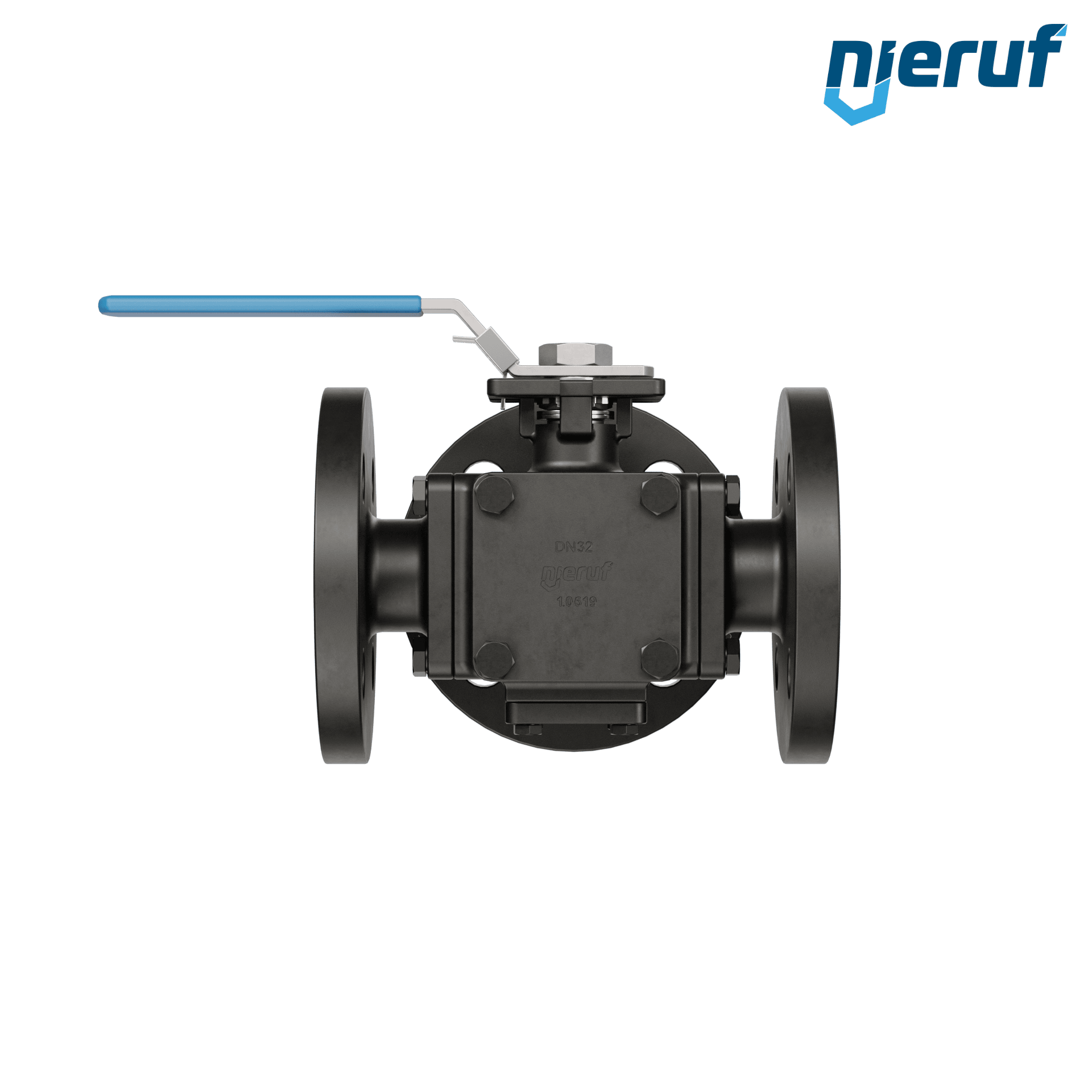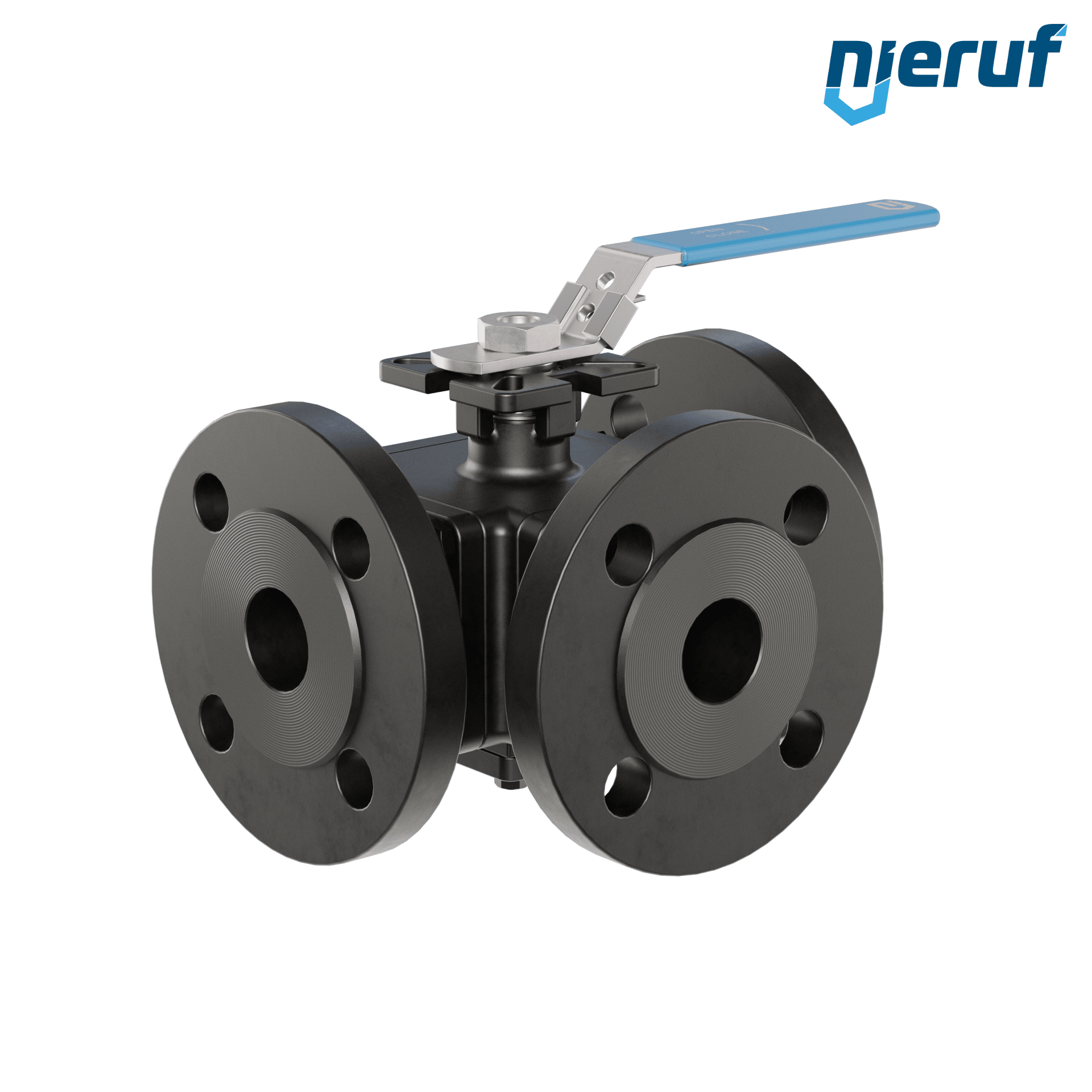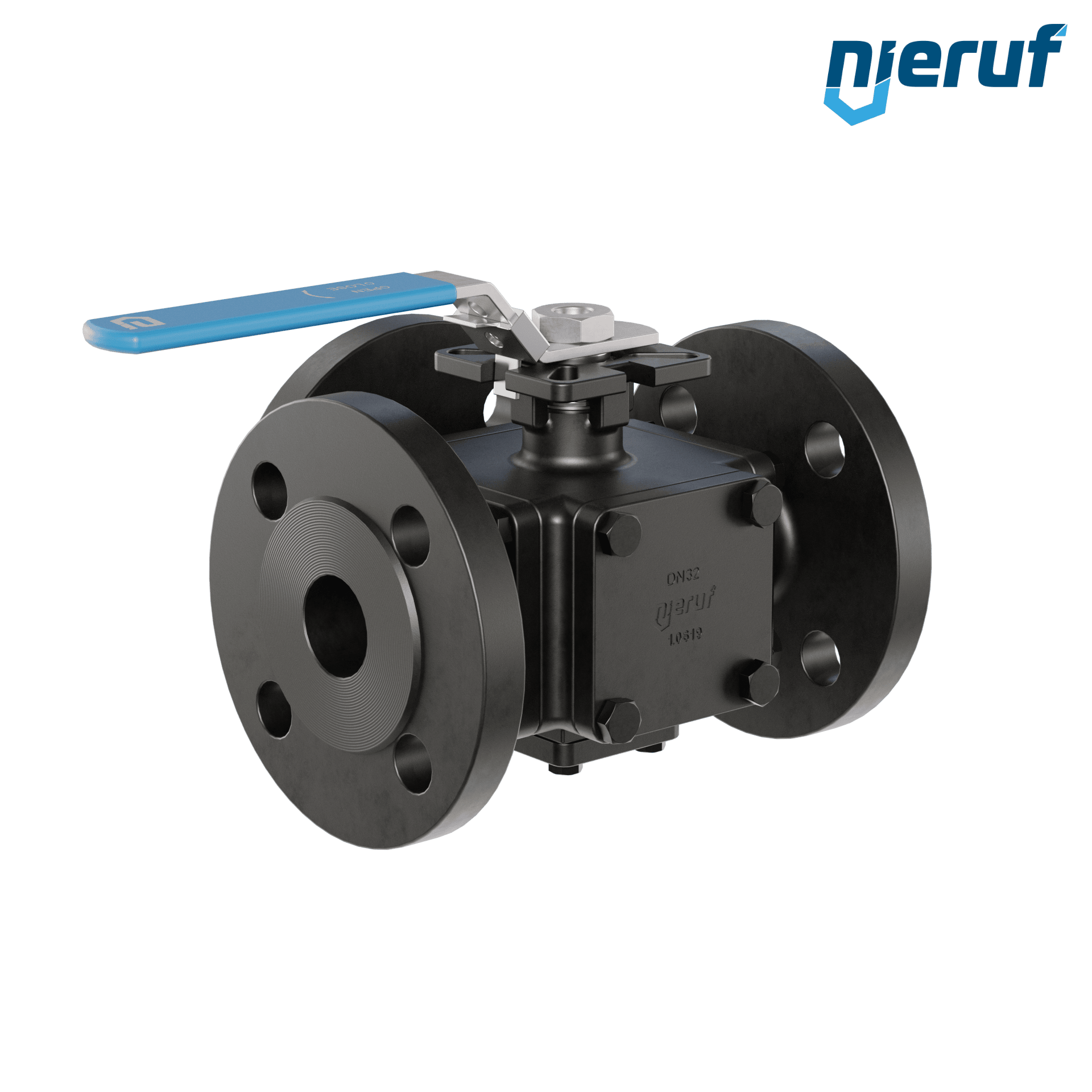 valvola a sfera flangiata a tre vie DN32 PN16/40 FK08 corpo in acciaio fuso 1.0619 sfera in acciaio fuso 1.4308 guarnizione TFM 1600 / PTFE incavo a forma di T