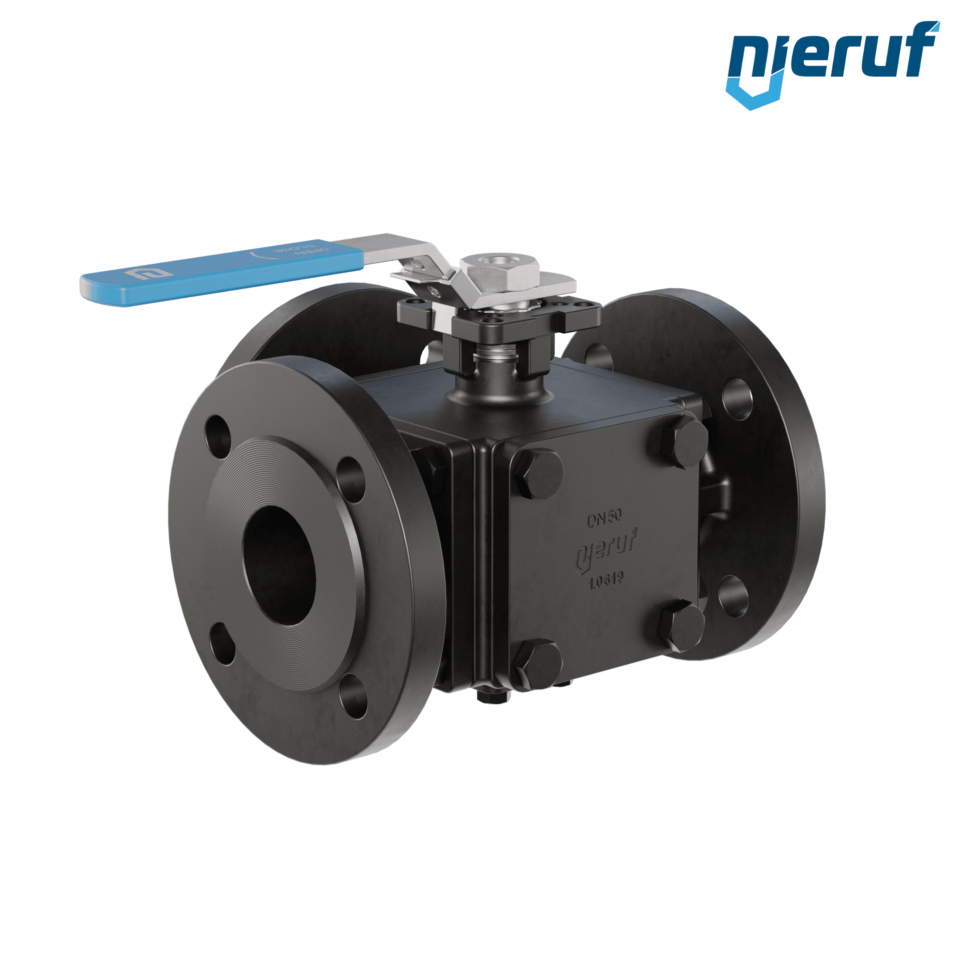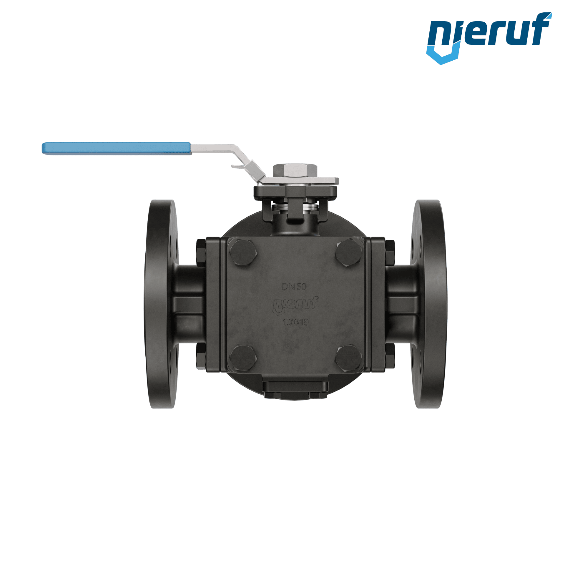 valvola a sfera flangiata a tre vie DN50 PN16/40 FK08 corpo in acciaio fuso 1.0619 sfera in acciaio fuso 1.4308 guarnizione TFM 1600 / PTFE incavo a forma di L