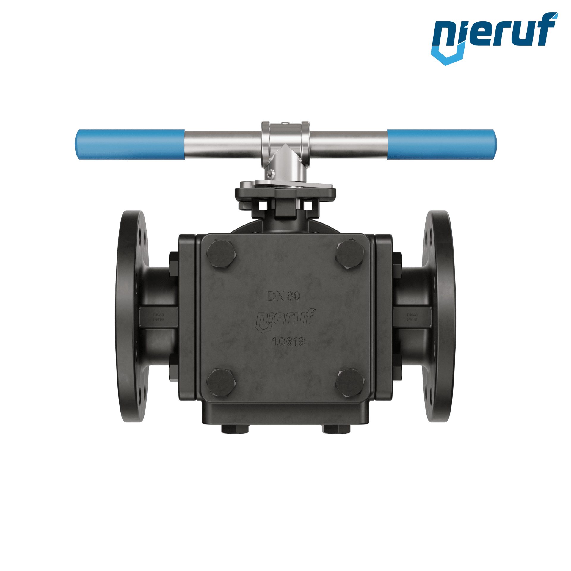 valvola a sfera flangiata a tre vie DN80 PN16 FK08 corpo in acciaio fuso 1.0619 sfera in acciaio fuso 1.4308 guarnizione TFM 1600 / PTFE incavo a forma di T