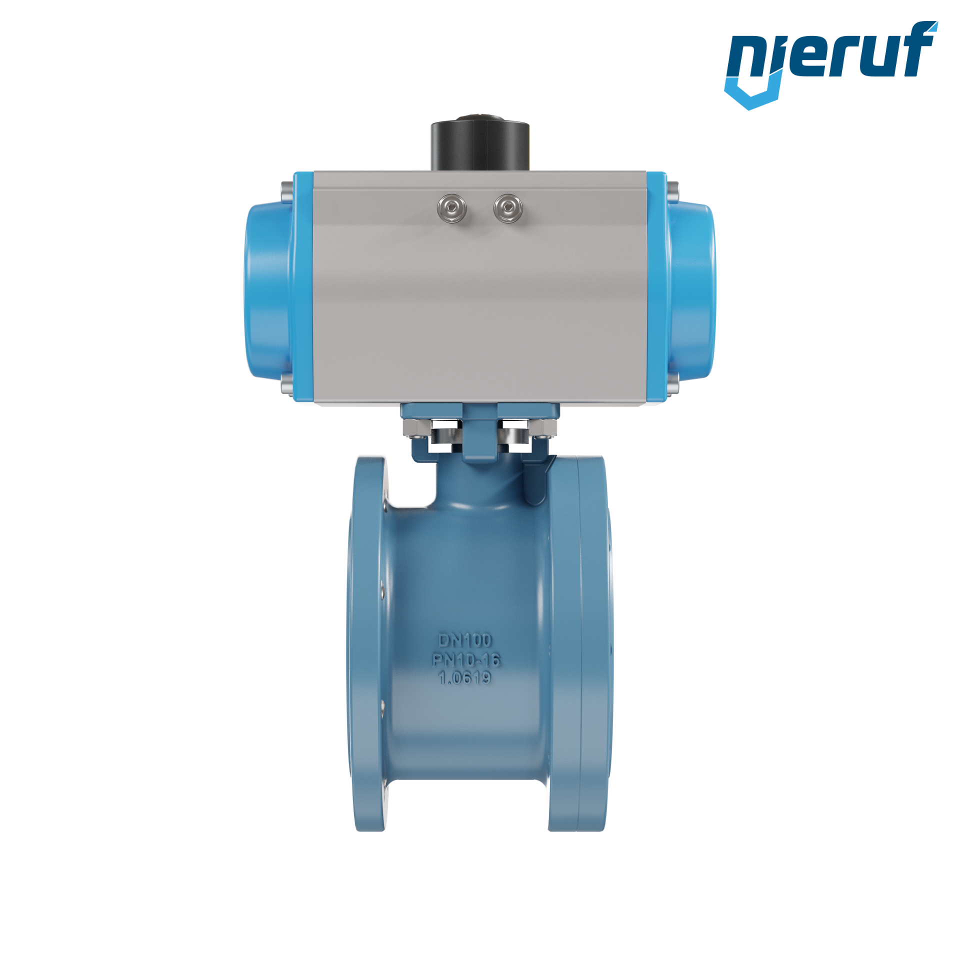 valvola a sfera flangiata dal design compatto DN100 acciaio fuso 1.0619 PK06 azionamento rotativo pneumatico GD105 in alluminio (funzionamento: GD = a doppio effetto)