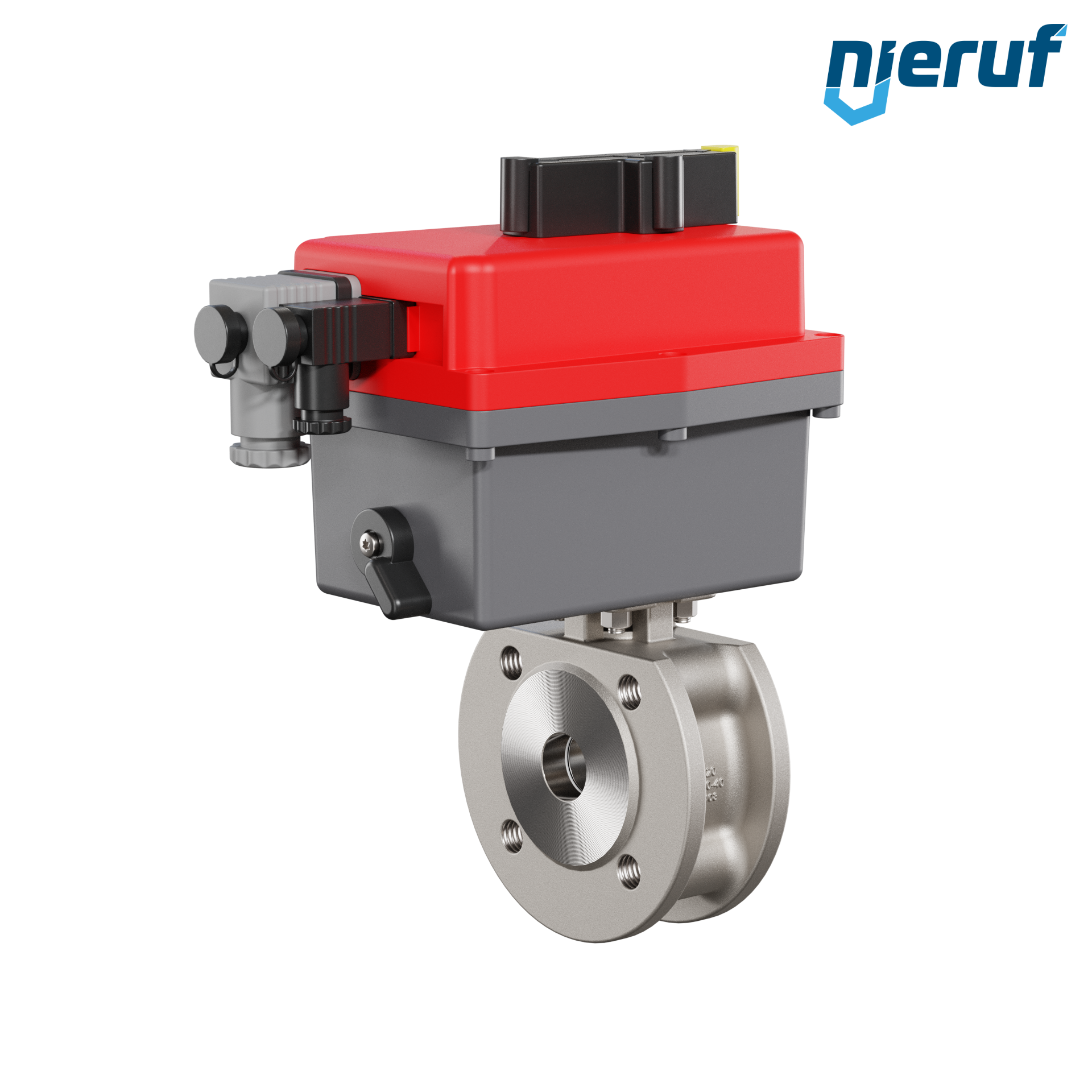 Questa valvola a sfera flangiata automatica di alta qualità in acciaio inossidabile con attuatore rotativo elettronico (Serie L = basso voltaggio) ha un indicatore di posizione ottico e comando manuale in caso di emergenza.