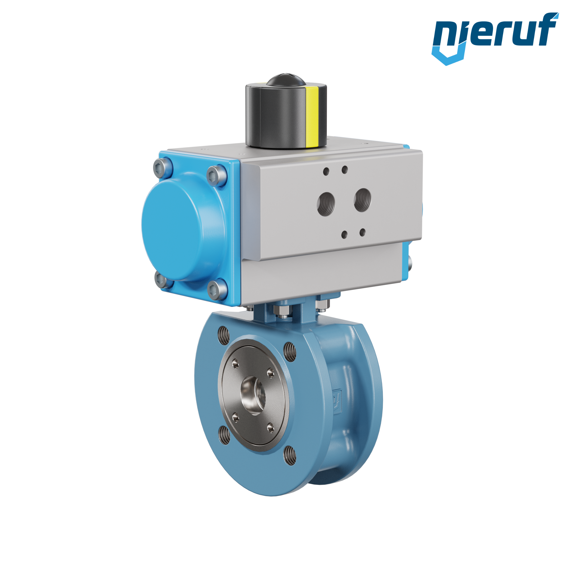 valvola a sfera flangiata dal design compatto DN20 acciaio fuso 1.0619 PK06 azionamento rotativo pneumatico GS052 in alluminio (funzionamento: GS = a effetto semplice)