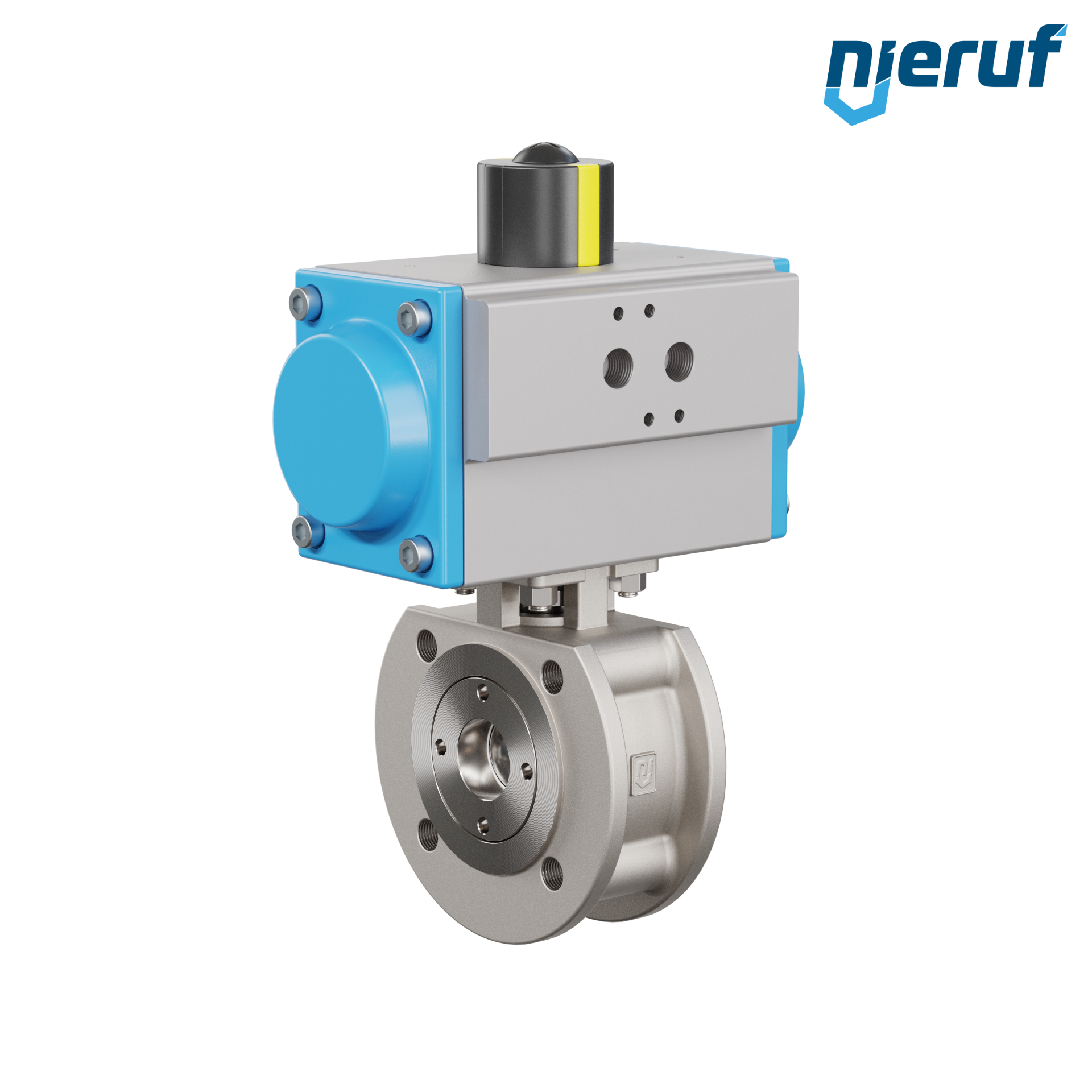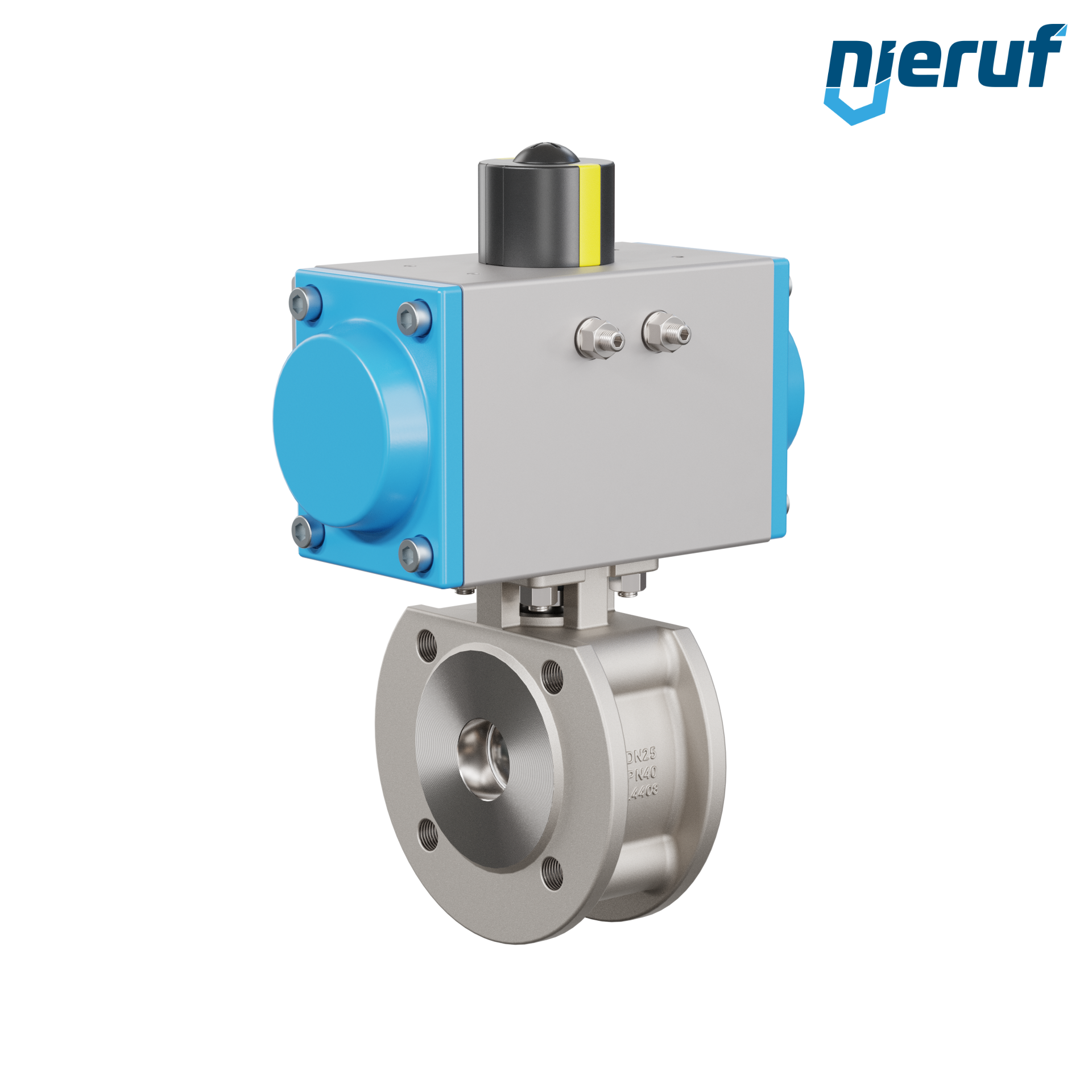 Per questa valvola a sfera flangiata automatica di alta qualità in acciaio inossidabile con attuatore rotativo pneumatico (GS = effetto semplice), è possibile un montaggio diretto a flangia di valvole elettromagnetiche Namur.