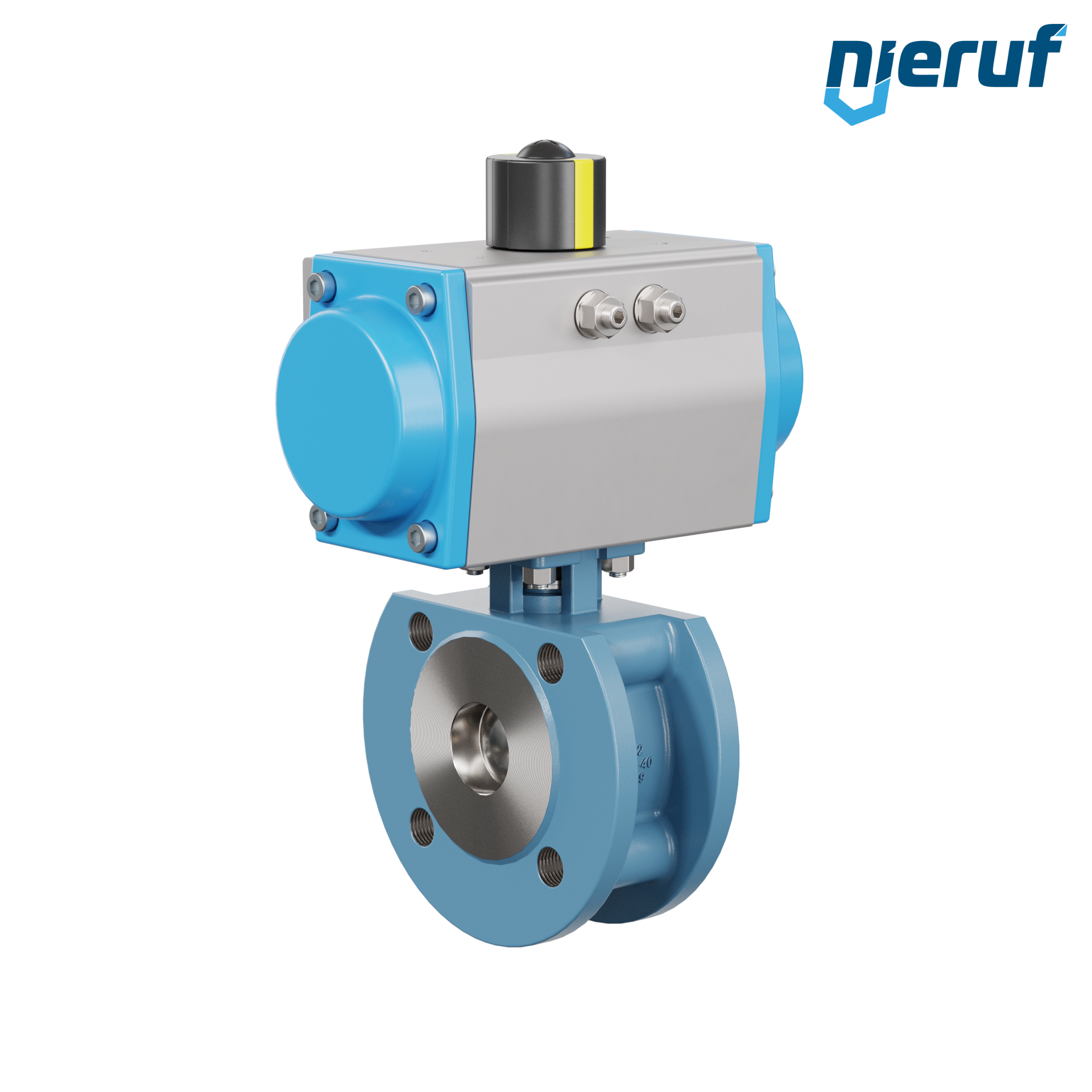 valvola a sfera flangiata dal design compatto DN32 acciaio fuso 1.0619 PK06 azionamento rotativo pneumatico GS075 in alluminio (funzionamento: GS = a effetto semplice)