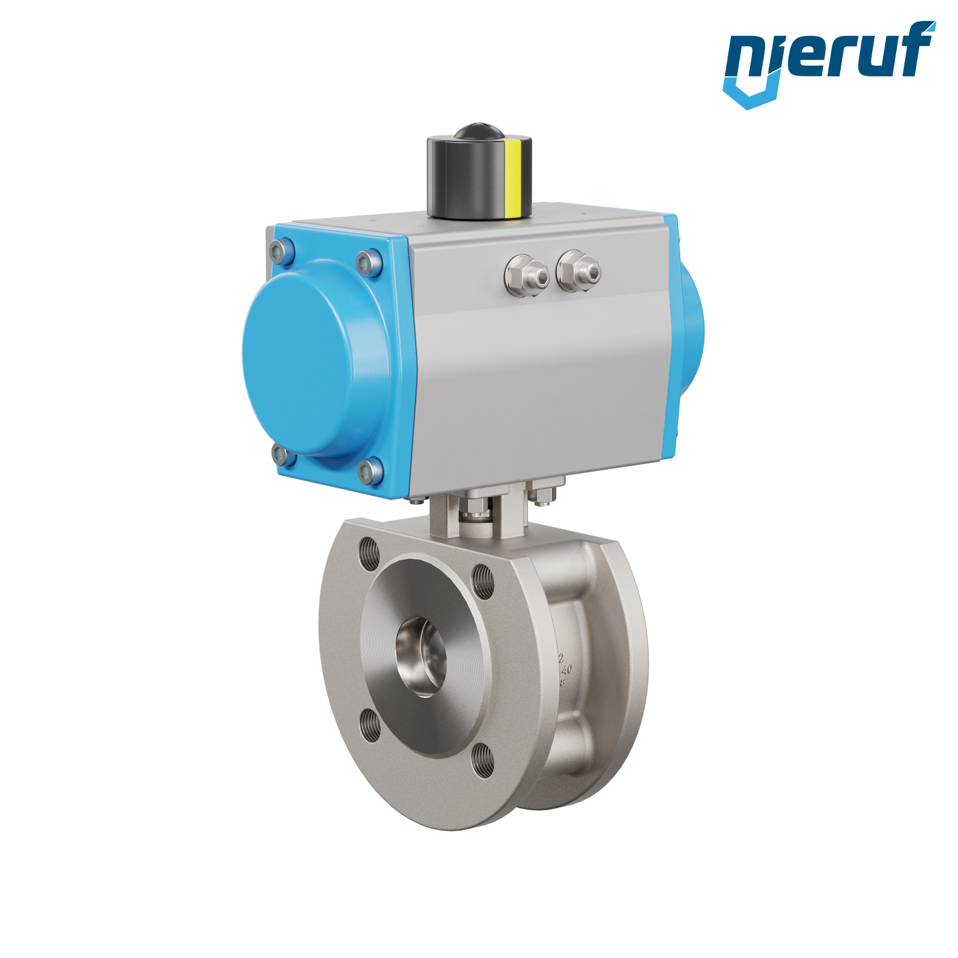 Per questa valvola a sfera flangiata automatica di alta qualità in acciaio inossidabile con attuatore rotativo pneumatico (GS = effetto semplice), è possibile un montaggio diretto a flangia di valvole elettromagnetiche Namur.
