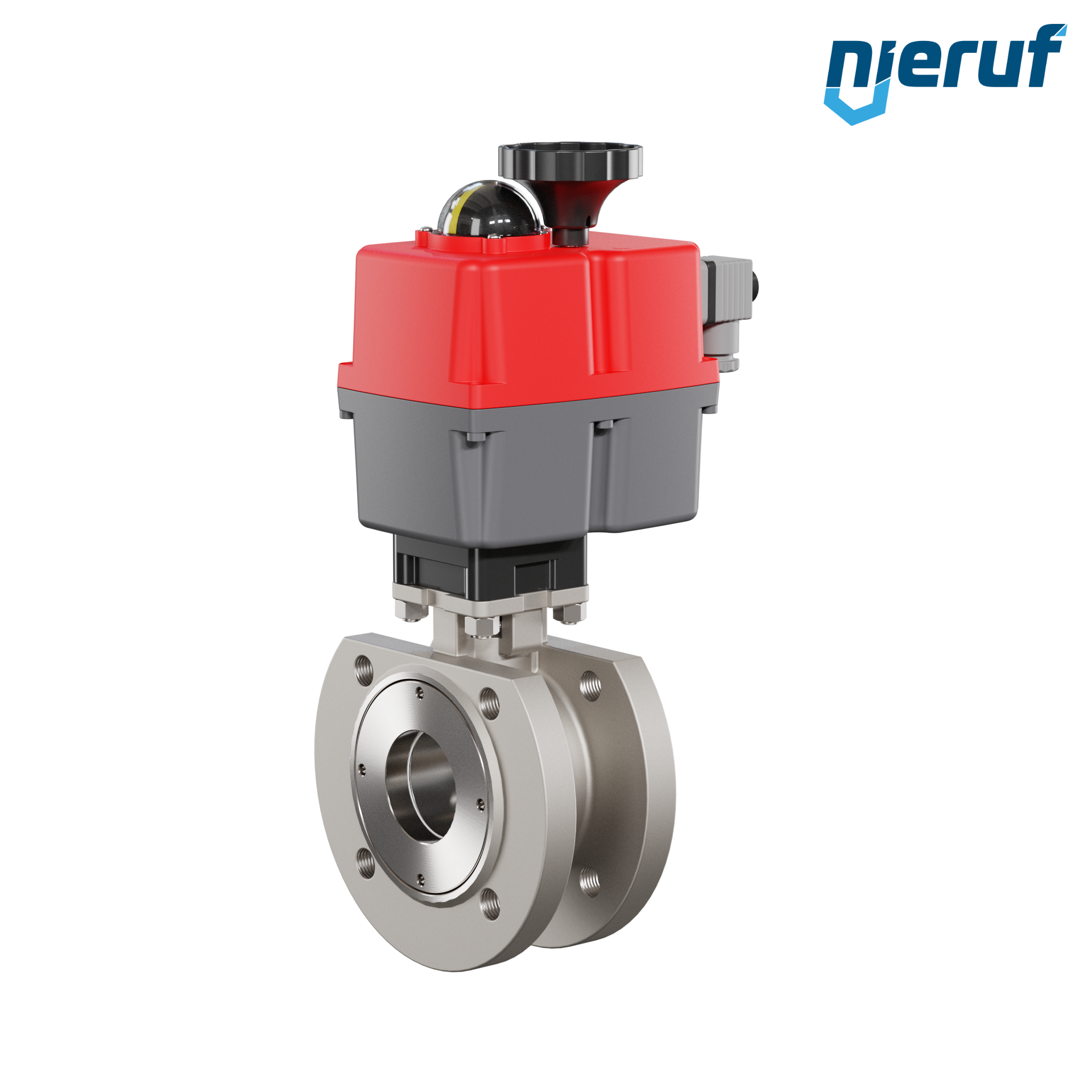 Questa valvola a sfera flangiata automatica di alta qualità in acciaio inossidabile con attuatore rotativo elettronico (Serie S = multi voltaggio) ha un indicatore di posizione ottico e comando manuale in caso di emergenza.